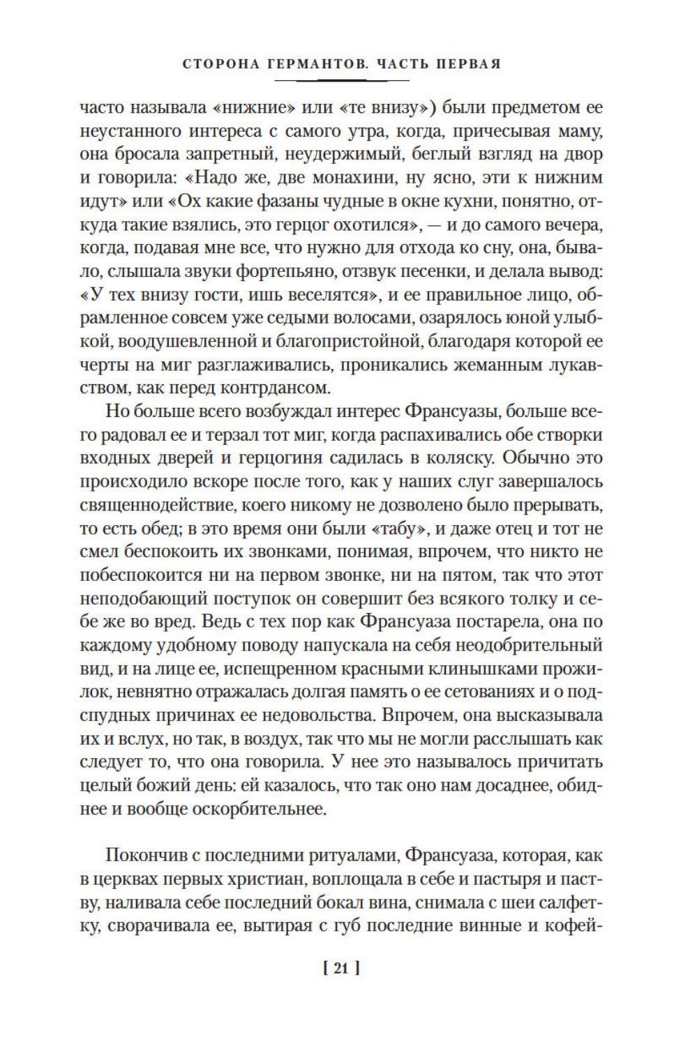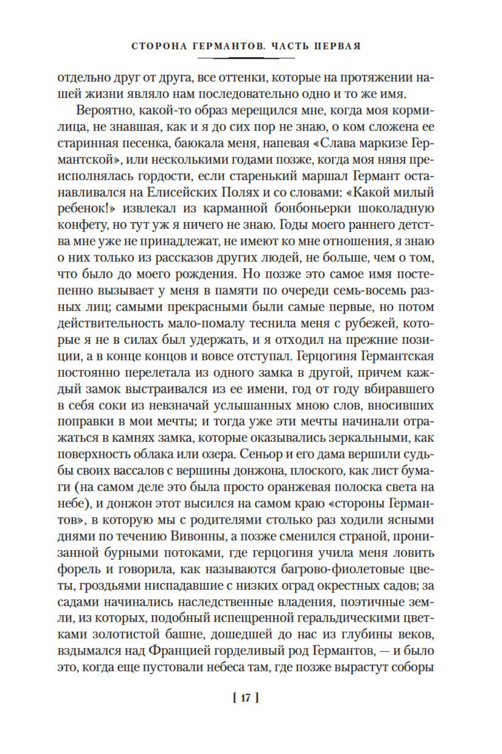 Первый том самого знаменитого французского романа ХХ века вышел более ста лет назад - в ноябре 1913 года. Роман назывался «В сторону Сванна», и его автор Марсель Пруст тогда еще не подозревал, что его детище разрастется в цикл «В поисках утраченного времени», над которым писатель будет работать до последних часов своей жизни. «Сторона Германтов» - третий том семитомного романа Марселя Пруста. Если первая книга, «В сторону Сванна», рассказывает о детстве главного героя и о том, что было до его рождения, вторая, «Под сенью дев, увенчанных цветами», - это его отрочество, крах первой любви и зарождение новой, то «Сторона Германтов» - это юность. Рассказчик, с малых лет покоренный поэзией имен, постигает наконец разницу между именем человека и самим этим человеком, именем города и самим этим городом. Он проникает в таинственный круг, манивший его с давних пор, иными словами, входит в общество родовой аристократии, и как по волшебству обретает дар двойного зрения, дар видеть обычных, не лишенных достоинств, но лишенных тайны и подчас таких забавных людей - и не терять контакта с таинственной, прекрасной старинной и животворной поэзией, прячущейся в их именах. Читателю предстоит оценить блистательный перевод Елены Баевской, который опровергает печально устоявшееся мнение о том, что Пруст - почтенный, интеллектуальный, но скучный автор.| Издательство | Иностранка |