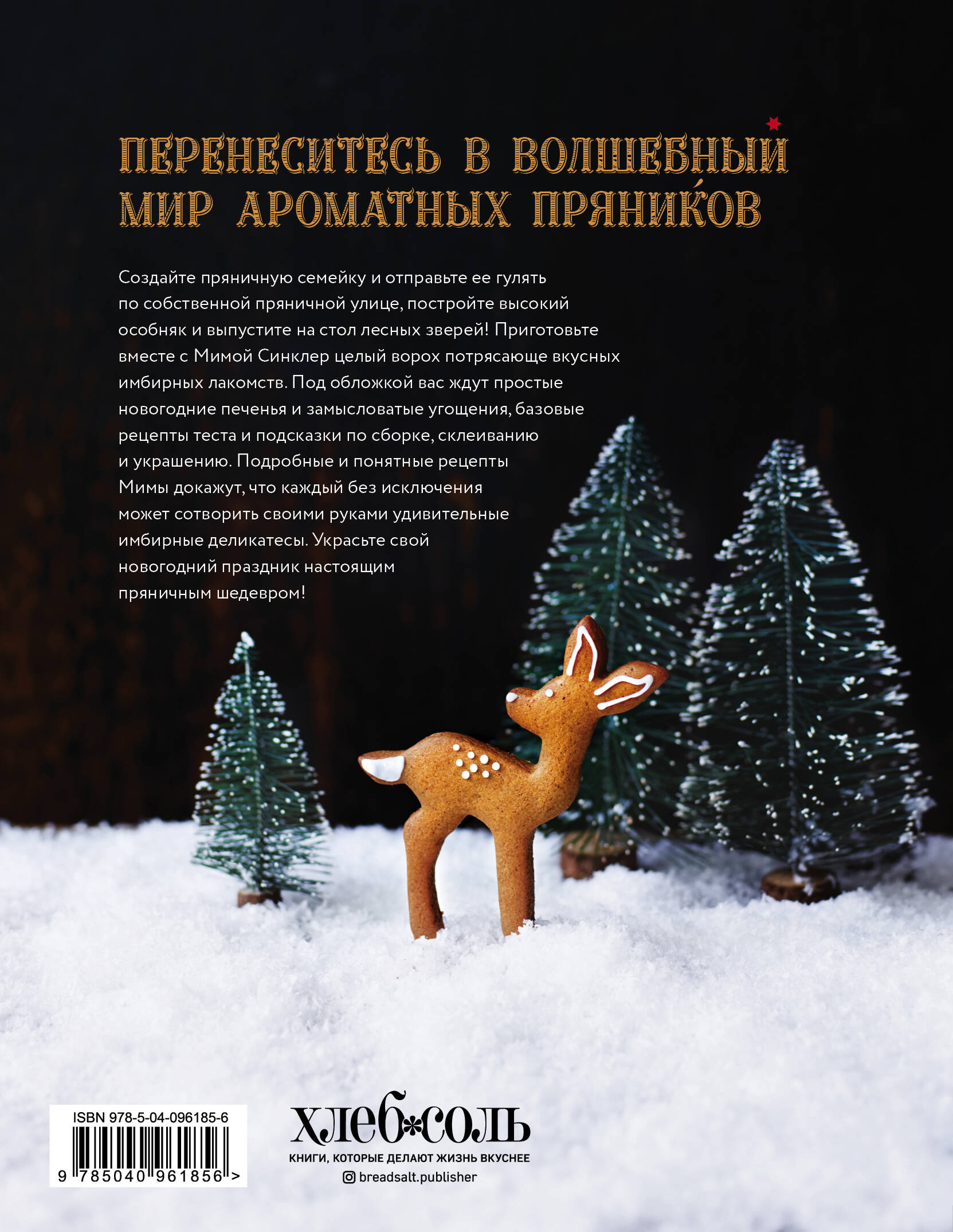 Перенеситесь в волшебный мир ароматных пряников! Создайте пряничную семейку и отправьте ее гулять по собственной пряничной улице, постройте высокий особняк и выпустите на стол лесных зверей! Приготовьте вместе с Мимой Синклер целый ворох потрясающе вкусных имбирных лакомств. Под обложкой вас ждут простые новогодние печенья и замысловатые угощения, базовые рецепты теста и подсказки по сборке, склеиванию и украшению. Подробные и понятные рецепты Мимы докажут, что каждый без исключения может сотворить своими руками удивительные имбирные деликатесы. Украсьте свой новогодний праздник настоящим пряничным шедевром!