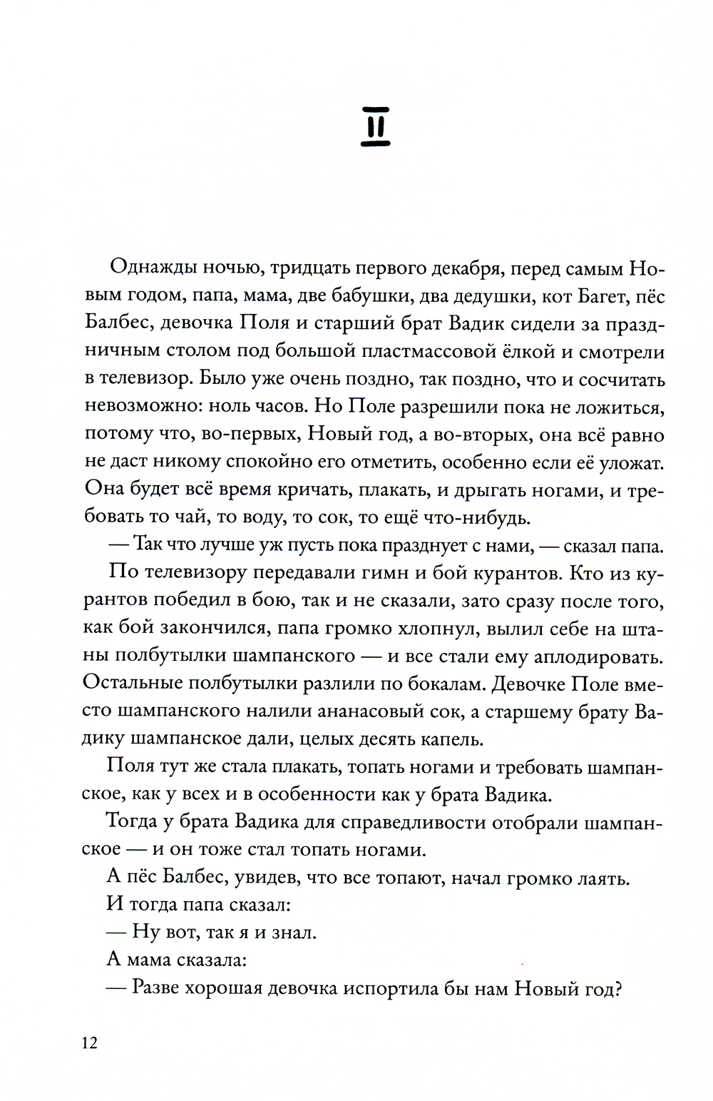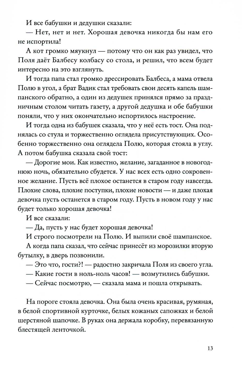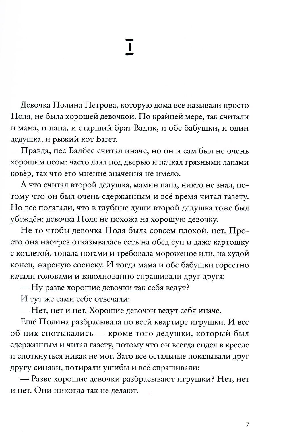Девочка Поля плохо себя вела. Семья Петровых предпочла бы растить хорошую девочку. И в новогоднюю ночь их заветное желание сбылось: плохая девочка Поля осталась в старом году, а вместо неё Петровым выдали новую, воспитанную, опрятную девочку. Но только совсем чужую. А родная Поля попала на перевоспитание в очень чистое, правильное и страшное место, где дети едят только полезную пищу, обожают уборку и всё делают по расписанию. «Страна Хороших Девочек» - своего рода детская антиутопия. Этой страны нет на карте мира, и граница её на замке. Только преданный пёс Балбес способен