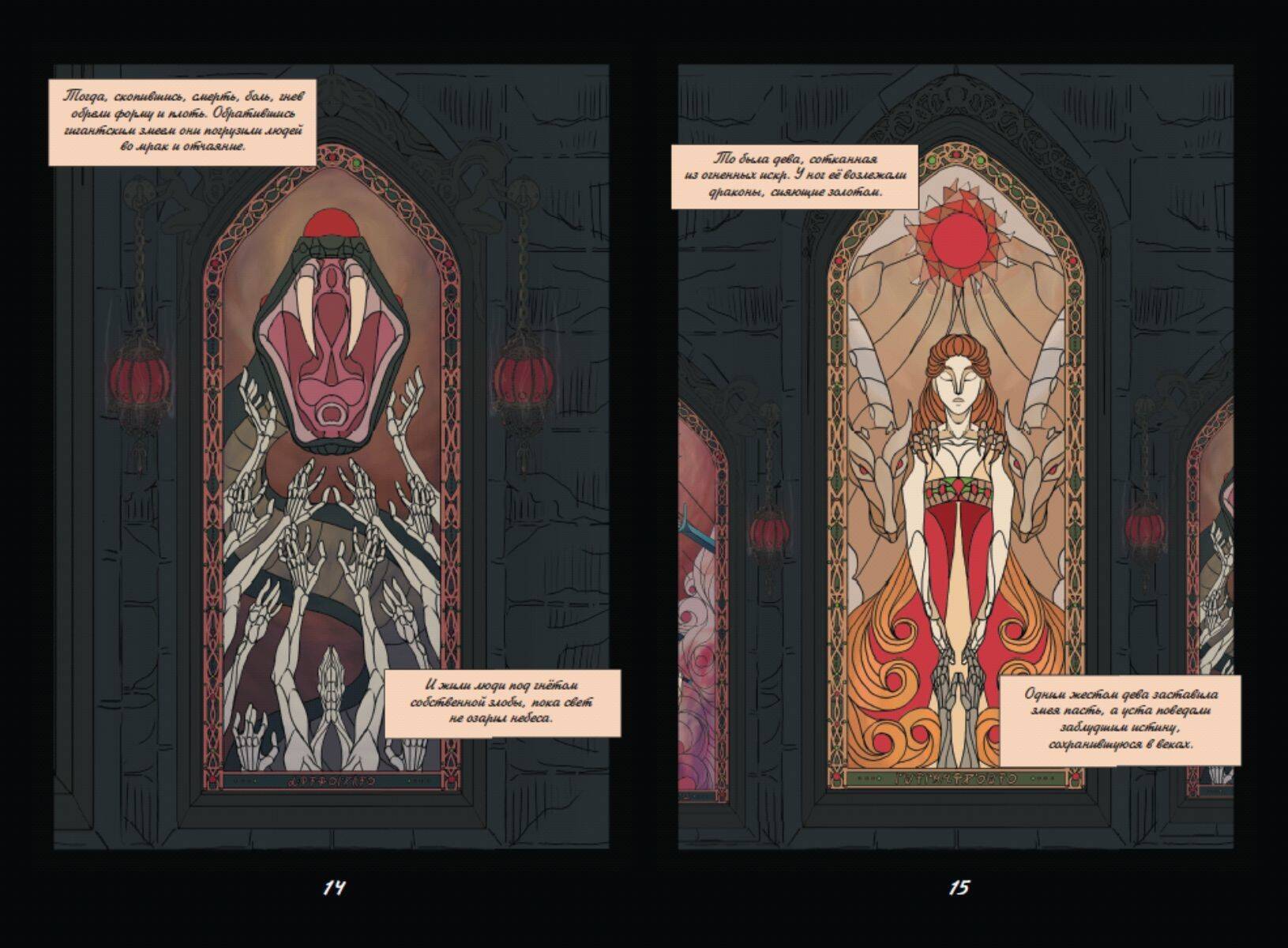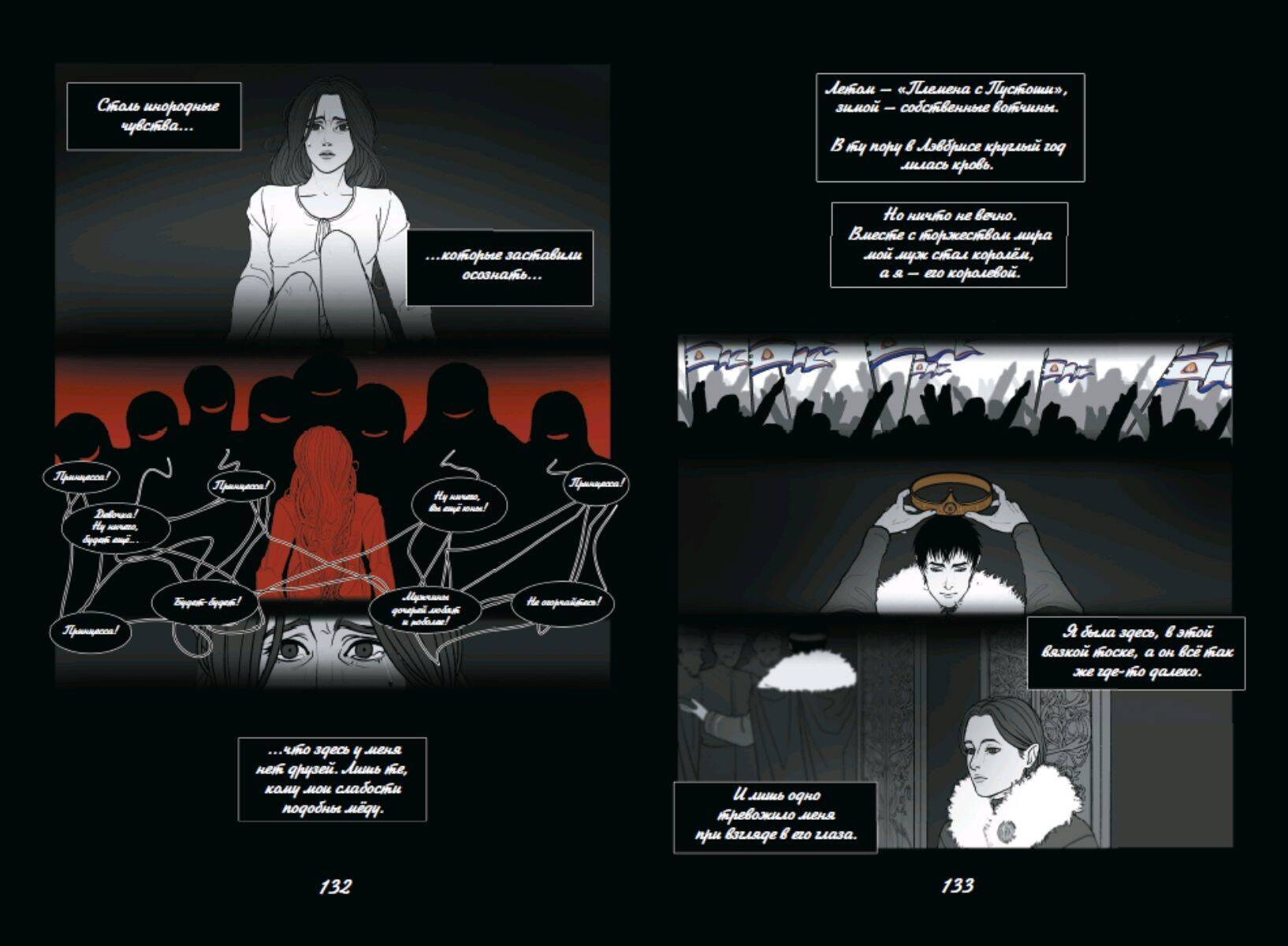 Работа победителя конкурса Эксмо.РУкомикс в номинации «Магический мир». Первая часть фэнтези-комикса о битвах за земли и славу, дворцовых интригах, магии, потаённых желаниях и мире, что идёт к краху. Когда-то люди были полны гнева и способны только на разрушение. Ненависть и боль, скопившиеся в их сердцах, пробудили ужасного монстра. Человечество погрузилось во мрак и отчаянье. Спасением стали Истинные Боги, которые подарили людям способность созидать. С тех пор прошло много лет, и люди вновь идут с мечом друг на друга. Человеческая жизнь снова начинает терять свою ценность, затмеваемая жаждой власти и богатств. Так, вступив в брак ради политического союза, Аири стойко переносит свою действительность, полную горестей и лишений. Однако, когда её семье на Юге требуется помощь, её муж, король Лэвбриса, Тенав, не торопится поддержать своих родственников и союзников. Представительница эльфов леди Вельвелла готова на всё, чтобы не дать своему народу вновь пасть жертвой сумасбродных людей у власти. Именно поэтому она опасается Южного Владыку Аарата. Тысячи судеб по воле богов неразрывно сплетутся между собой. Обречены ли люди повторять ошибки прошлого или они в силах написать новую главу в истории мира?