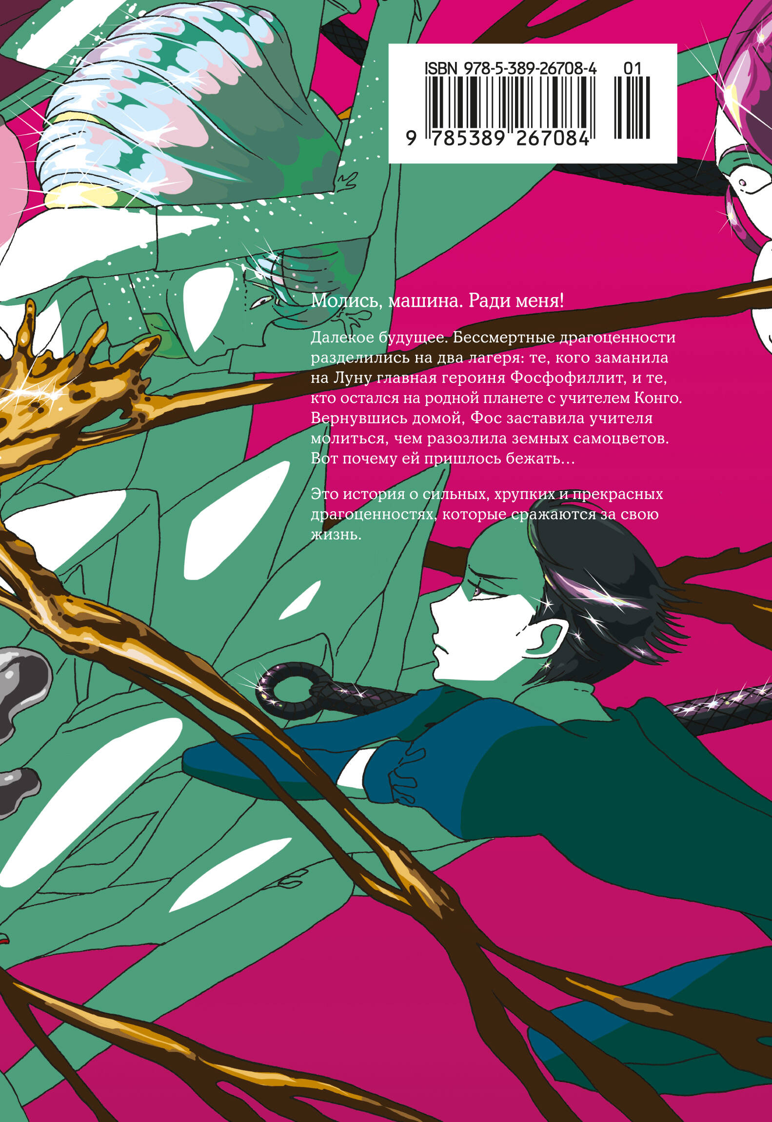 Молись, машина. Ради меня! Далекое будущее. Бессмертные драгоценности разделились на два лагеря: те, кого заманила на Луну главная героиня Фосфофиллит, и те, кто остался на родной планете с учителем Конго. Вернувшись домой, Фос заставила учителя молиться, чем разозлила земных самоцветов. Вот почему ей пришлось бежать… Это история о сильных, хрупких и прекрасных драгоценностях, которые сражаются за свою жизнь.