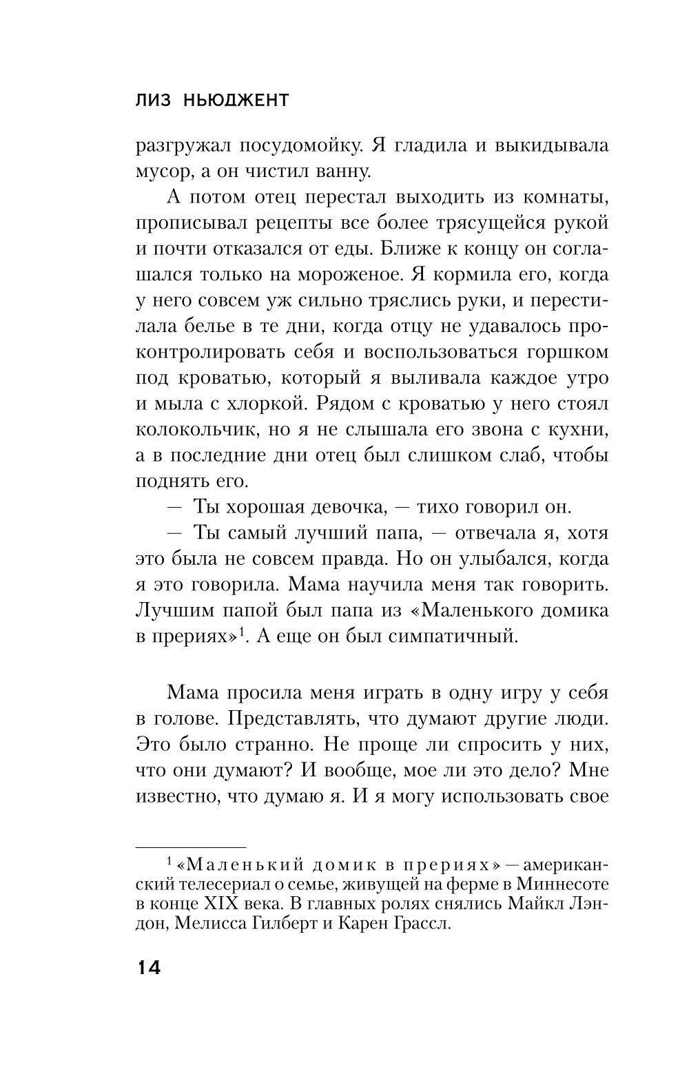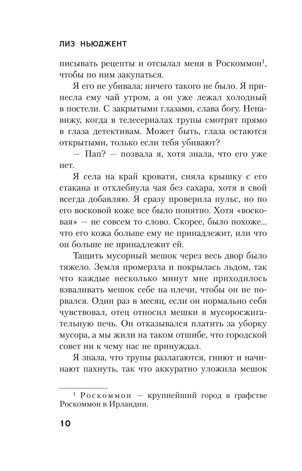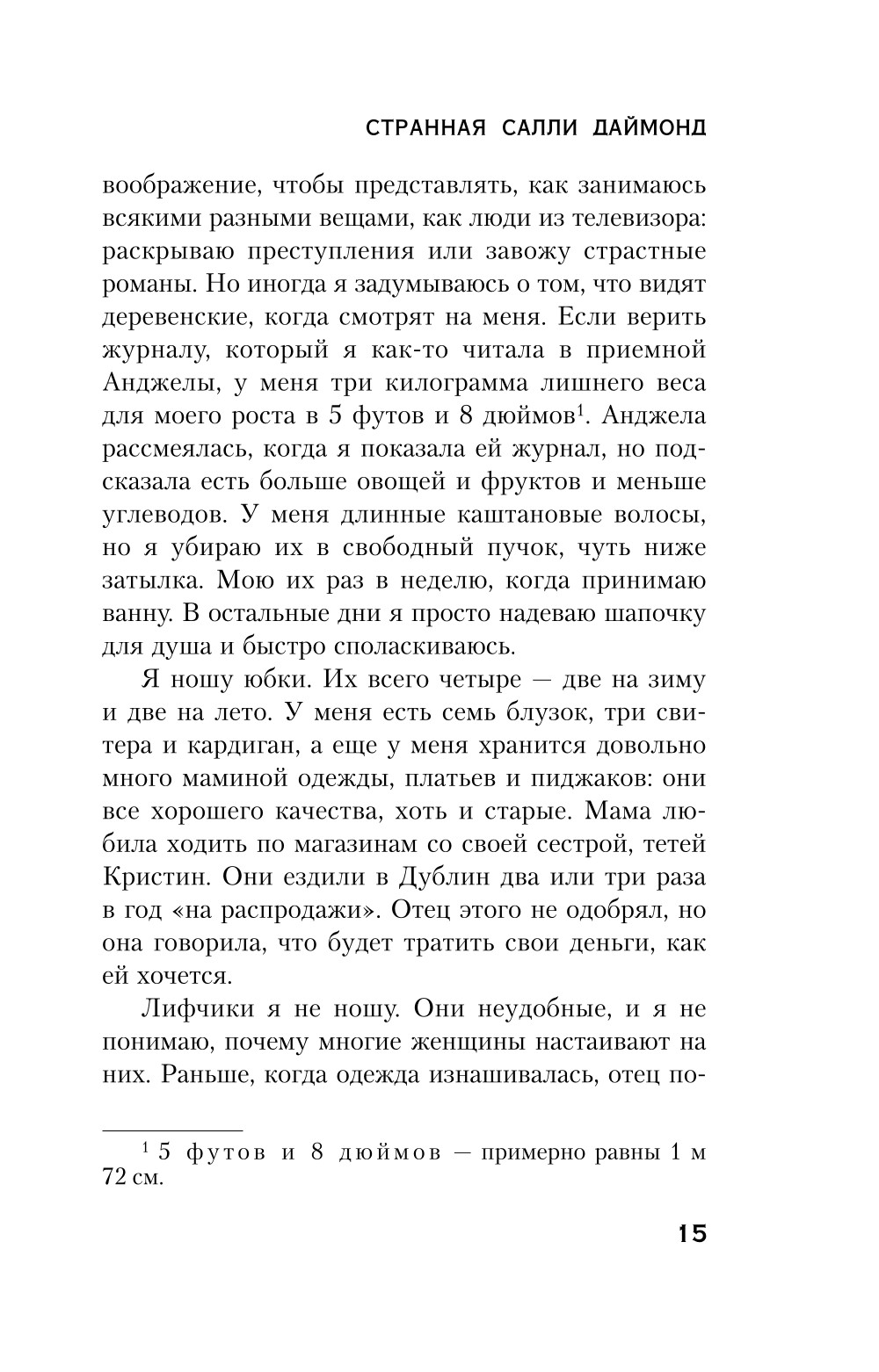 Мрачный, извращенный и одновременно трогательный триллер о женщине-социофобке, вынужденной противостоять непонятному ей миру и страшному прошлому, которое вернулось за ней. Бедная Салли Даймонд не может понять, почему то, что она сделала, кажется всем соседям и полиции таким странным. Она всего лишь выполнила просьбу своего отца - сожгла его мертвое тело в сарае вместе с мусором. Что не так? И почему полицейские недовольны тем, что потом Салли тщательно вымыла весь дом и выстирала одежду? Мама бы точно ею гордилась. После этой истории Салли оказывается в центре внимания голодных до сенсации СМИ и детективов. Внезапно она получает странный подарок - грязного игрушечного мишку с оторванным глазом и записку от некоего «С», которому явно известно что-то ужасное о ее прошлом. Но кто он? А еще Салли преследуют кошмары с изможденной женщиной в темной комнате, хотя до этого она никогда не видела снов. Притворяясь полжизни глухой, просто чтобы ни с кем не разговаривать, Салли приходится познавать этот мир с нуля. Ей предстоит выяснить, кто этот таинственный преследователь, чье присутствие с каждым днем ощущается все острее…| Издательство | Эксмо |