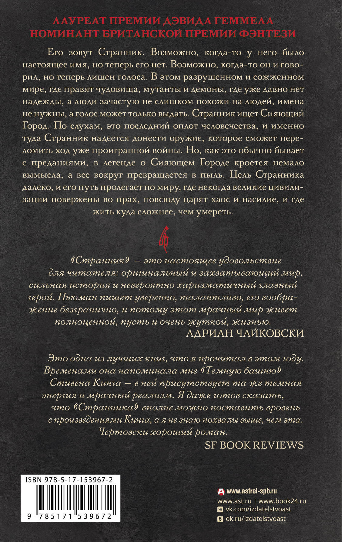 Его зовут Странник. Возможно, когда-то у него было настоящее имя, но теперь его нет. Возможно, когда-то он и говорил, но теперь лишен голоса. В этом разрушенном и сожженном мире, где правят чудовища, мутанты и демоны, где уже давно нет надежды, а люди зачастую не слишком похожи на людей, имена не нужны, а голос может только выдать. Странник ищет Сияющий Город. По слухам, это последний оплот человечества, и именно туда Странник надеется донести оружие, которое сможет переломить ход уже проигранной войны. Но, как это обычно бывает с преданиями, в легенде о Сияющем Городе кроется немало вымысла, а все вокруг превращается в пыль. Цель Странника далеко, и его путь пролегает по миру, где некогда великие цивилизации повержены во прах, повсюду царят хаос и насилие, и где жить куда сложнее, чем умереть.| Издательство | ИЗДАТЕЛЬСТВО "АСТ" |