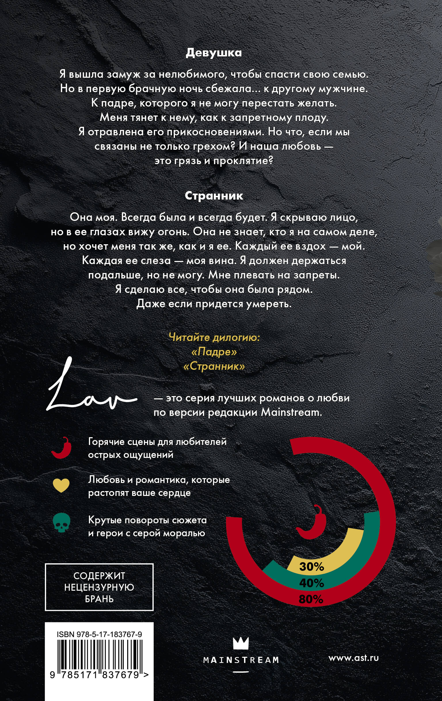 - Любовь. Искушение. Грех. Темный роман о запретной страсти и любви. - Горячее продолжение романа «Падре». Финал дилогии. - Провокационная, мрачная история об истинной любви, что сильнее долга и веры. Внутри: семейные тайны, муки выбора, одержимый герой-собственник и горячие сцены. - Для поклонников историй в жанре dark romance о запретной любви: «Исповедь» и «Грешник» Сьерры Симоне, «Прости меня, отец» Катерины Сент-Клер и «Уроки во грехе» Пэм Гудвин. - Стильное и качественное издание серии «LAV. Темный роман на русском»: атмосферная обложка с тиснением, цветные форзацы, стильная верстка, типографская бумага.| Издательство | Издательство "АСТ" |