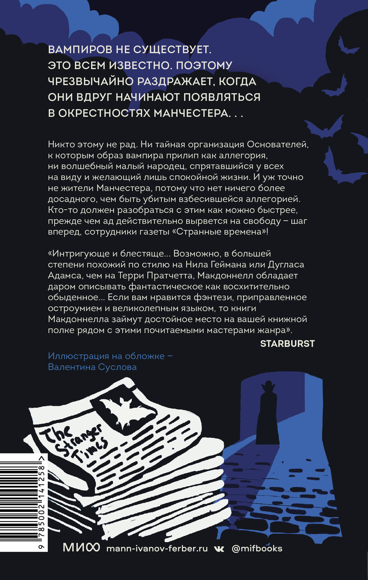 Продолжение фэнтези «Странные времена. Предвиденные происшествия с бессмертными» Серия в духе «Благих знамений». Понравится поклонникам Геймана и Кинга Неповторимый британский юмор, нетривиальный сюжет и яркие персонажи| Издательство | МАНН, ИВАНОВ И ФЕРБЕР ООО |
