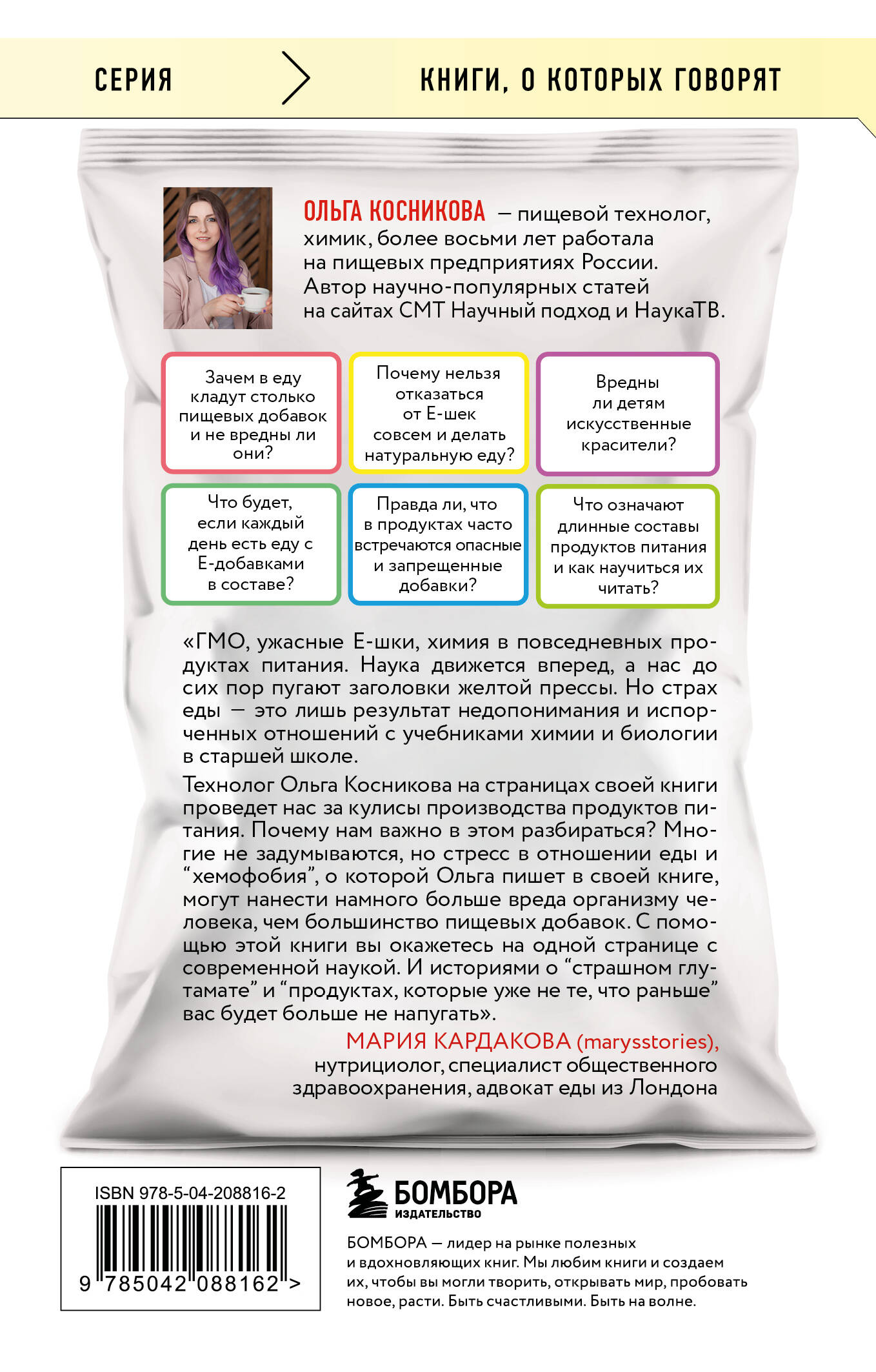 Что скрывает от вас ваша любимая шоколадка и о чем молчит йогурт со вкусом персика? Вокруг пищевых добавок сложился зловещий ореол, в то время как об их реальных свойствах мало кто знает. Безликий индекс из букв и цифр ни о чем не говорит обычному покупателю, а ГМО, Е-шки, глутамат и прочие добавки ассоциируются с чем-то небезопасным и ненатуральным, «химическим». Но, может, не так страшна химия, как ее малюют? В своей книге Ольга Косникова, химик и пищевой технолог, подробно разбирает свойства добавок и объясняет, почему не стоит сгущать краски и бояться длинных составов на этикетке. Что такое «хемофобия» и почему нас так пугает все искусственное? Зачем в еду кладут красители и подсластители? Есть ли в замороженных продуктах витамины? Ольга проводит краткий ликбез по консервантам, стабилизаторам, регуляторам и антиоксидантам, доступно и с юмором объясняет все самое важное про сахарозаменители и ароматизаторы, а также учит критически воспринимать любую информацию. После прочтения этой книги вы станете лучше разбираться в составах, чуть ближе познакомитесь с химией и по-новому взглянете на эту причудливую науку! «ГМО, ужасные Е-шки, химия в повседневных продуктах питания. Наука движется вперед, а нас до сих пор пугают заголовки желтой прессы. Но страх еды - это лишь результат недопонимания и испорченных отношений с учебниками химии и биологии в старшей школе. Технолог Ольга Косникова на страницах своей книги проведет нас за кулисы производства продуктов питания. Почему нам важно в этом разбираться? Многие не задумываются, но стресс в отношении еды и "хемофобия", о которой Ольга пишет в своей книге, могут нанести намного больше вреда организму человека, чем большинство пищевых добавок. С помощью этой книги вы окажетесь на одной странице с современной наукой. И историями о "страшном глутамате" и "продуктах, которые уже не те, что раньше" вас будет больше не напугать». - МАРИЯ КАРДАКОВА (@marysstories), нутрициолог, специалист общественного здравоохранения, адвокат еды из Лондона| Издательство | ООО "Издательство "Эксмо" |