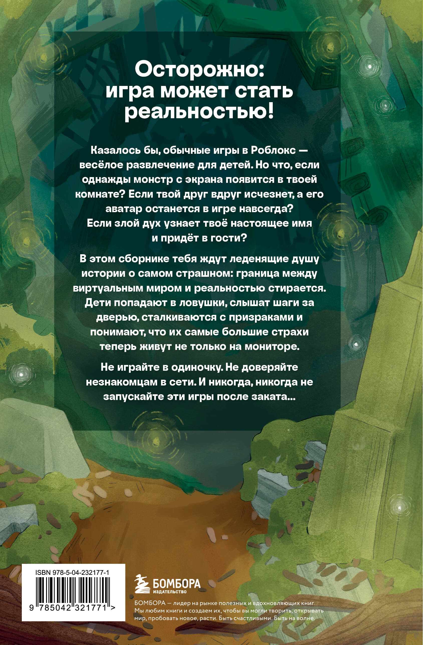 Осторожно: игра может стать реальностью! Казалось бы, обычные игры в «Роблокс» - весёлое развлечение для детей. Но что, если однажды монстр с экрана появится в твоей комнате? Если твой друг вдруг исчезнет, а его аватар останется в игре навсегда? Если злой дух узнает твоё настоящее имя и придёт в гости? В этом сборнике тебя ждут леденящие душу истории о самом страшном: граница между виртуальным миром и реальностью стирается. Дети попадают в ловушки, слышат шаги за дверью, сталкиваются с призраками и понимают, что их самые большие страхи теперь живут не только на мониторе. Не играйте в одиночку. Не доверяйте незнакомцам в Сети. И никогда, никогда не запускайте эти игры после заката…| Издательство | ООО "Издательство "Эксмо" |