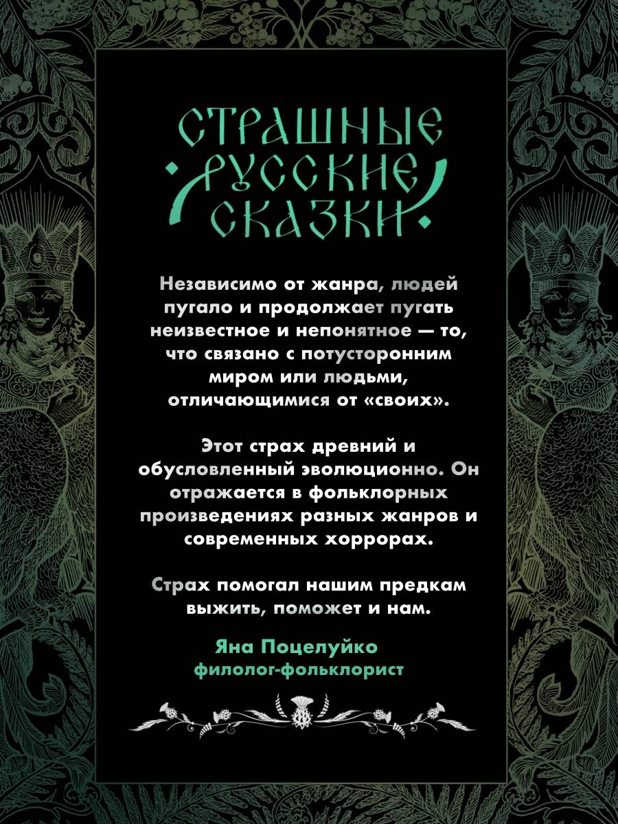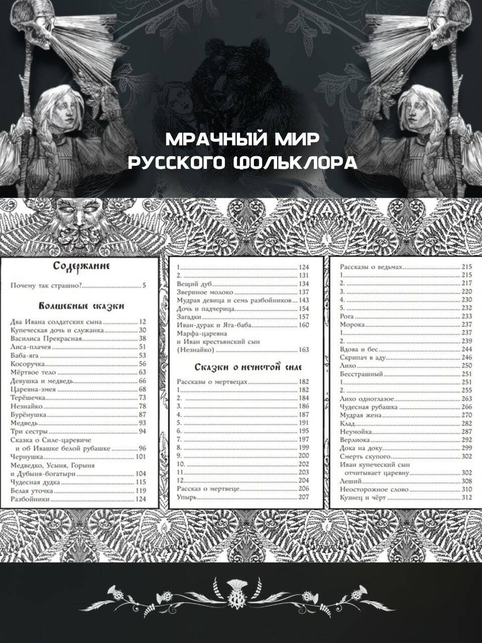 Сказки, которые мы любим с детства, не всегда были такими добрыми. Их истоки лежат в мрачной глубине народного фольклора, рожденного жестокими временами. Никто бы не хотел оказаться в такой сказке по своей воле. Эта книга погружает вас в мир русского фольклора, где царят мистические существа и страшные легенды. Баба Яга и Кощей Бессмертный, ведьмы и колдуны, мертвецы и упыри оживают в сказках, быличках и рассказах. Здесь нет места светлому волшебству, ведь это - страшные русские сказки.| Издательство | Издательство "АСТ" |