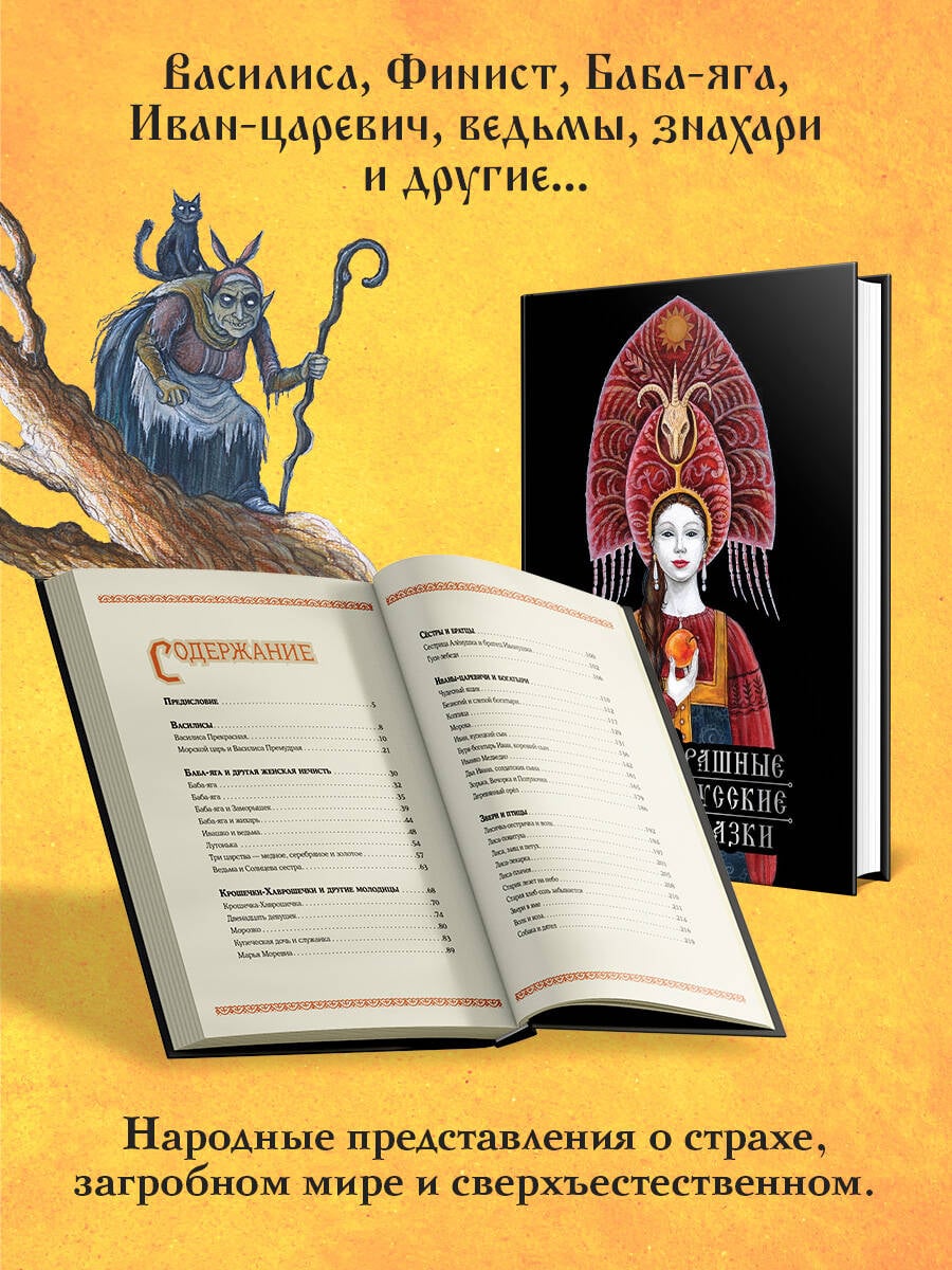 Коллекция страшных русских сказок Александра Николаевича Афанасьева - это собрание народных мистических повествований с такими традиционными архетипами, как Василиса, Финист, Баба-яга, Иван-царевич, ведьмы, знахари и другими персонажами фольклора. Иллюстрации Ирины Петелиной из собрания "Другие сказки" усиливают загадочную атмосферу книги. Каждая глава начинается с краткого описания ключевых архетипов, что помогает читателю глубже понять древние представления о страхе, загробном мире и сверхъестественном, открывая опыт, тайны и бесценную народную мудрость.| Издательство | ООО "Издательство "Эксмо" |