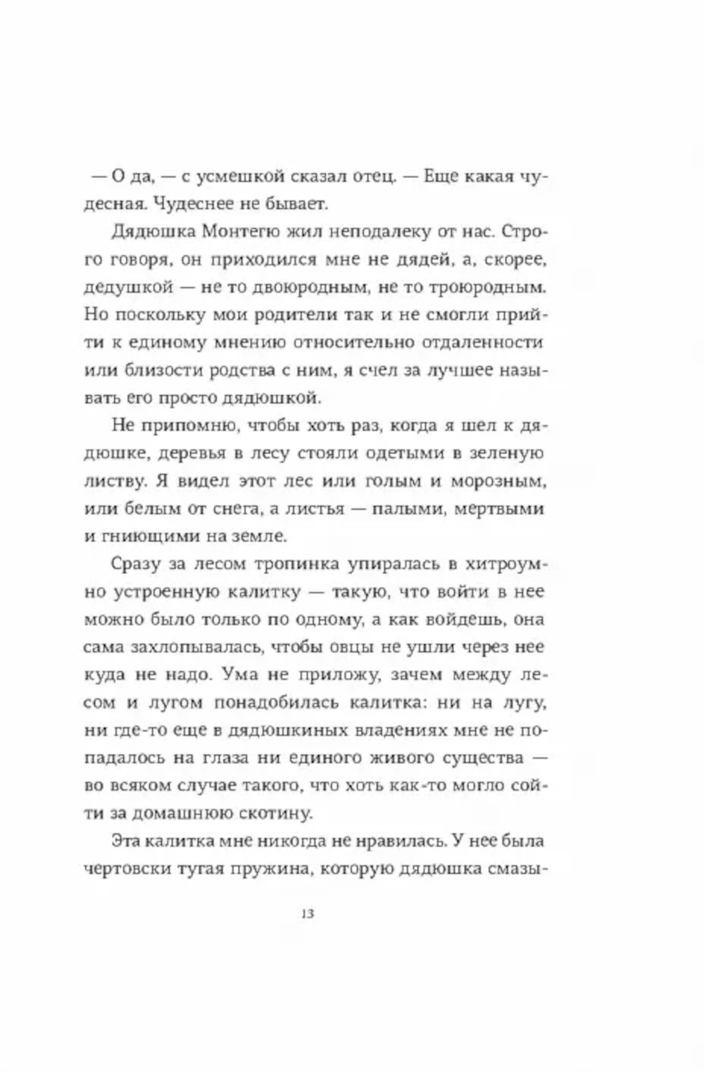 Тропинка к дому дядюшки Монтегю лежит через лес. И хотя дорога кажется короткой, но для Эдгара в ней есть что-то необъяснимо жуткое. К тому же, уверен он, из-за деревьев за ним следят деревенские дети. Но он ни за что не покажет им своего страха. Ведь в конце этого не самого приятного пути его ждет то, что искупает все его страхи и опасения, - дядюшкины рассказы. Эдгар готов на многое, лишь бы послушать его истории. Крис Пристли - современный английский писатель, мастер классических «страшилок», пугающих до жути, но непременно - с моралью, которую легко разглядит внимательный читатель. Как только уймет дрожь и стук зубов.| Издательство | Самокат |