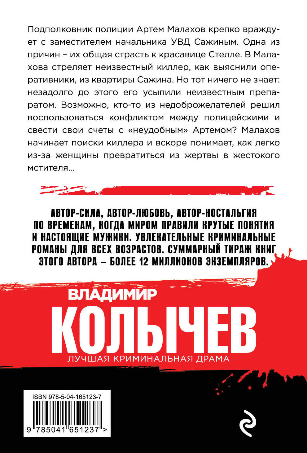 Подполковник полиции Артем Малахов крепко враждует с заместителем начальника УВД Сажиным. Одна из причин - их общая страсть к красавице Стелле. В Малахова стреляет неизвестный киллер, как выяснили оперативники, из квартиры Сажина. Но тот ничего не знает: незадолго до этого его усыпили неизвестным препаратом. Возможно, кто-то из недоброжелателей решил воспользоваться конфликтом между полицейскими и свести свои счеты с «неудобным» Артемом? Малахов начинает поиски киллера и вскоре понимает, как легко из-за женщины превратиться из жертвы в жестокого мстителя… Еще одна захватывающая история, в которой человеческие чувства проходят проверку в жарком горниле бандитского беспредела. Автор-сила, автор-любовь, автор-ностальгия - по временам, когда миром правили крутые понятия и настоящие мужики. Суммарный тираж книг этого автора - более 13 миллионов экземпляров.| Издательство | Эксмо |