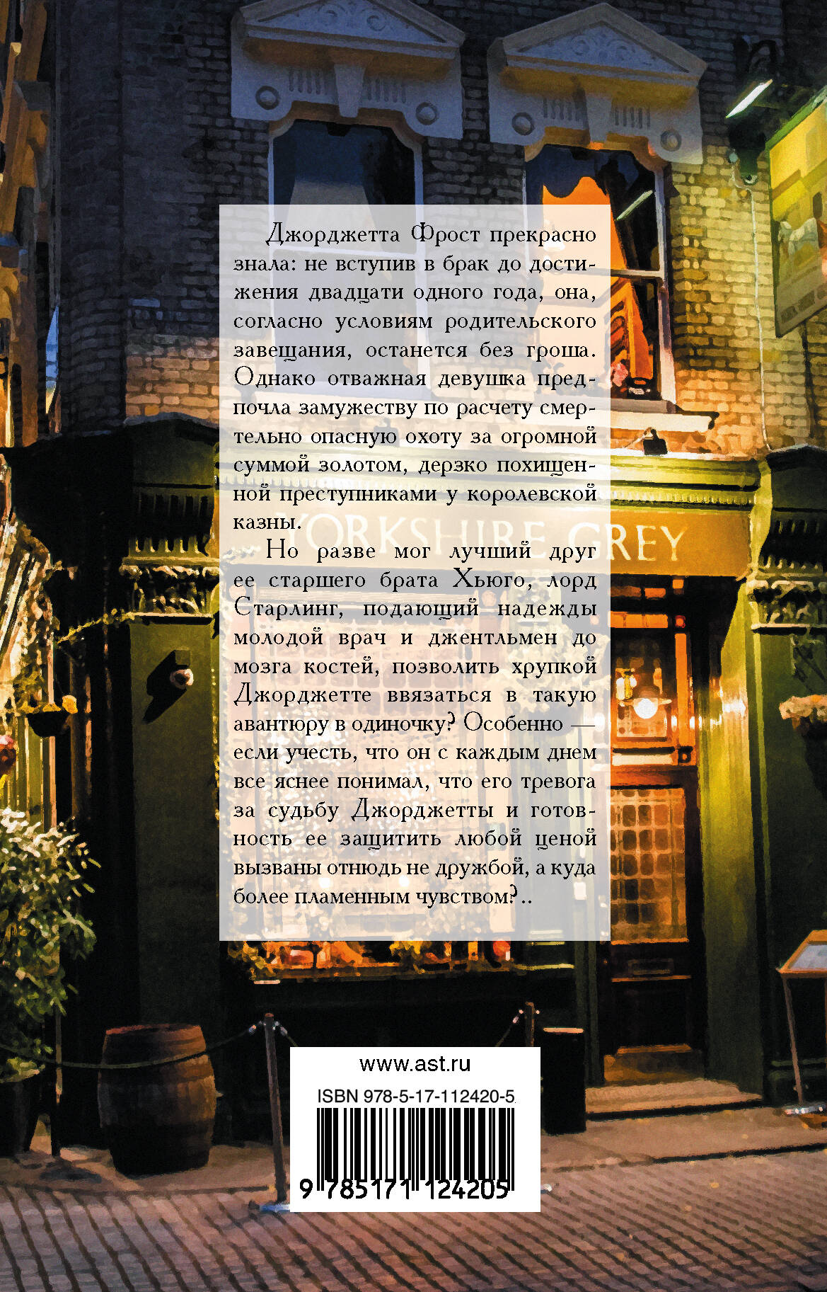 Джорджетта Фрост прекрасно знала: не вступив в брак до достижения двадцати одного года, она, согласно условиям родительского завещания, останется без гроша. Однако отважная девушка предпочла замужеству по расчету смертельно опасную охоту за огромной суммой золотом, дерзко похищенной преступниками у королевской казны. Но разве мог лучший друг ее старшего брата Хьюго, лорд Старлинг, подающий надежды молодой врач и джентльмен до мозга костей, позволить хрупкой Джорджетте ввязаться в такую авантюру в одиночку? Особенно - если учесть, что он с каждым днем все яснее понимал, что его тревога за судьбу Джорджетты и готовность ее защитить любой ценой вызваны отнюдь не дружбой, а куда более пламенным чувством?..| Издательство | ИЗДАТЕЛЬСТВО "АСТ" |