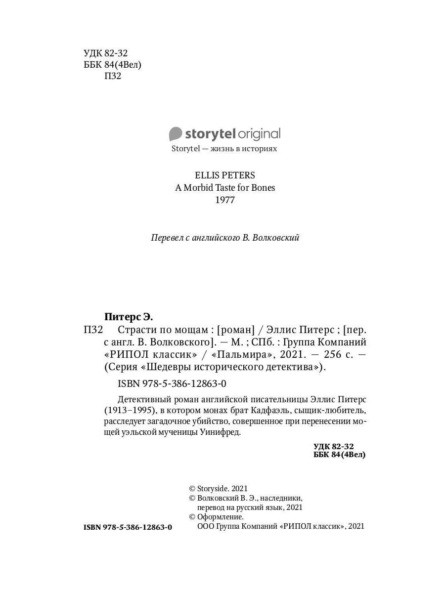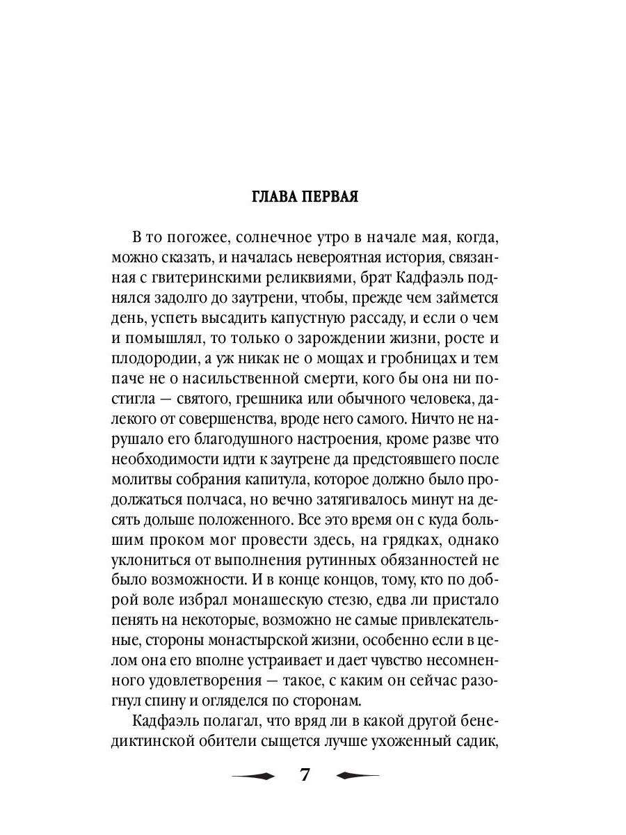 Детективный роман английской писательницы Эллис Питерс (1913-1995), в котором монах брат Кадфаэль, сыщик-любитель, расследует загадочное убийство, совершенное при перенесении мощей уэльской мученицы Уинифред.| Издательство | Рипол Классик |