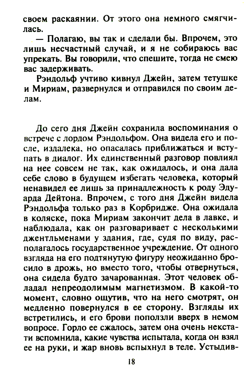 Сестра Джейн Дейтон сбежала с младшим сыном заклятого врага ее семьи. Будучи преисполнена решимости вернуть ее любой ценой, Джейн отважилась просить о помощи грозного старшего брата юноши лорда Фрэнсиса Рэндольфа. В путешествии-погоне за беглецами Джейн и Фрэнсис невольно начинают тянуться друг к другу, и кульминацией их чувств становится греховный поцелуй. У возлюбленных нет даже малейшей надежды на счастье: их семьи враждуют уже много лет. Но Джейн не может удержаться отвлечения к запретным прикосновениям Фрэнсиса...| Издательство | Центрполиграф |