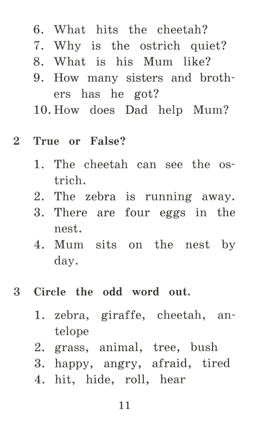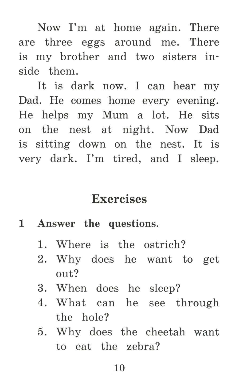Эта книга - сборник забавных историй о жизни семьи страусов, поведанных самым старшим из страусят. Жизнь африканских страусят одновременно полна опасностей и курьёзов. Во всех ситуациях их спасает находчивость, самоотверженность и преданность друг другу. Каждая глава снабжена упражнениями, направленными на развитие навыков речи и отработку грамматики. Пособие адресовано учащимся 3-4 классов школ, лицеев и гимназий. Книга содержит англо-русский словарь, соответствующий данному этапу обучения.| Издательство | Айрис-Пресс |