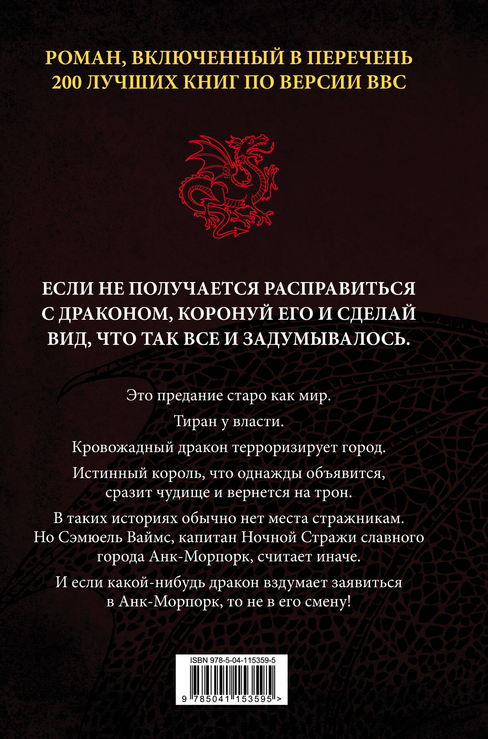 Это предание старо как мир. Тиран у власти. Кровожадный дракон терроризирует город. Истинный король, что однажды объявится, сразит чудище и вернется на трон. В таких историях обычно нет места стражникам. Но Сэмюель Ваймс, капитан Ночной Стражи славного города Анк-Морпорк, считает иначе. И если какой-нибудь дракон вздумает заявиться в Анк-Морпорк, то... не в его смену! Подарочное издание первого романа из серии «Городская Стража» цикла «Плоский мир» с цветными и черно-белыми иллюстрациями Пола Кидби. Первый роман сэра Терри Пратчетта из серии «Городская Стража» цикла «Плоский мир». Роман-бестселлер New York Times. Эксклюзивные цветные и черно-белые иллюстрации самого Пола Кидби! Фирменный стиль Терри Пратчетта, романы которого переведены на 38 языков и проданы суммарным тиражом около 100 миллионов экземпляров. Смотрите экранизацию от BBC America!| Издательство | ООО "Издательство "Эксмо" |