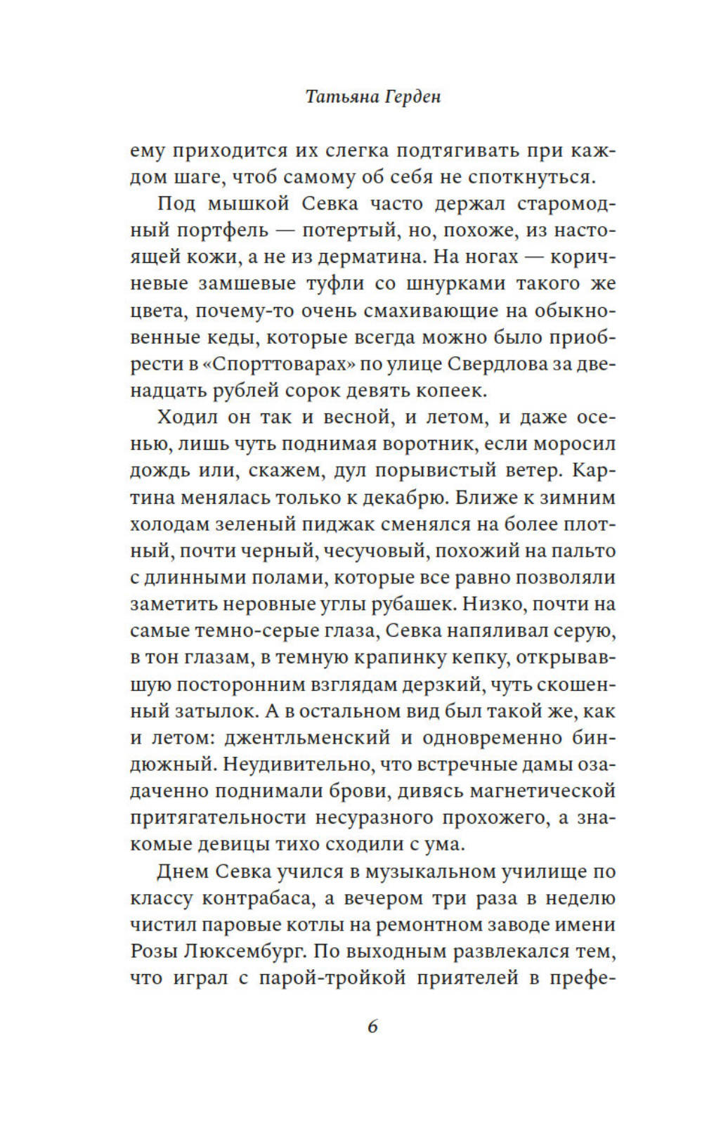Татьяна Герден заселяет романное пространство очень харизматичными персонажами. Она наделяет их необычными способностями, увлечениями и характерами, не боится смешивать стили и жанры, ломать стереотипы и игнорировать правила: "Говорят, что у японских мастеров икебаны существует пятьдесят одно правило составления букета. Мне больше всего нравится пятьдесят первое правило: "Ум и сердце художника не должны быть скованы предыдущими правилами"". Конец 1950-х. Обычный провинциальный город Песчанск, где живет обычный с виду парень - Сева Чернихин. Обычный он действительно только с виду. Дело в том, что днем Сева работает на заводе, а по вечерам играет на старинном трофейном контрабасе по имени Амадеус и сочиняет музыку. А еще Сева - заядлый преферансист и художник. И музыка, и преферанс, и мимолетные романтические увлечения - это попытка уберечься от кошмаров, которые преследуют его после после трагической гибели матери. В том же городке живет Людвика, которой учитель рисования дал прозвище Стрекоза - за хрупкость и большие голубые глаза. Несмотря на женственность и хрупкость, у Людвики стальной характер, она отлично разбирается в оружии, которое коллекционирует ее отец, прекрасно стреляет в тире и мечтает стать врачом. На первый взгляд, ничего общего у этих двоих быть не может. Но судьба любит причудливые переплетения, особенно ей нравится соединять тех, у кого нет ничего общего| Издательство | Азбука-Аттикус Издат.группа ООО |