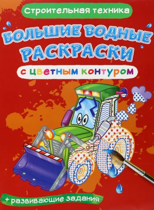 Строительная техника. Водная раскраска с цветным контуром + развивающие задания