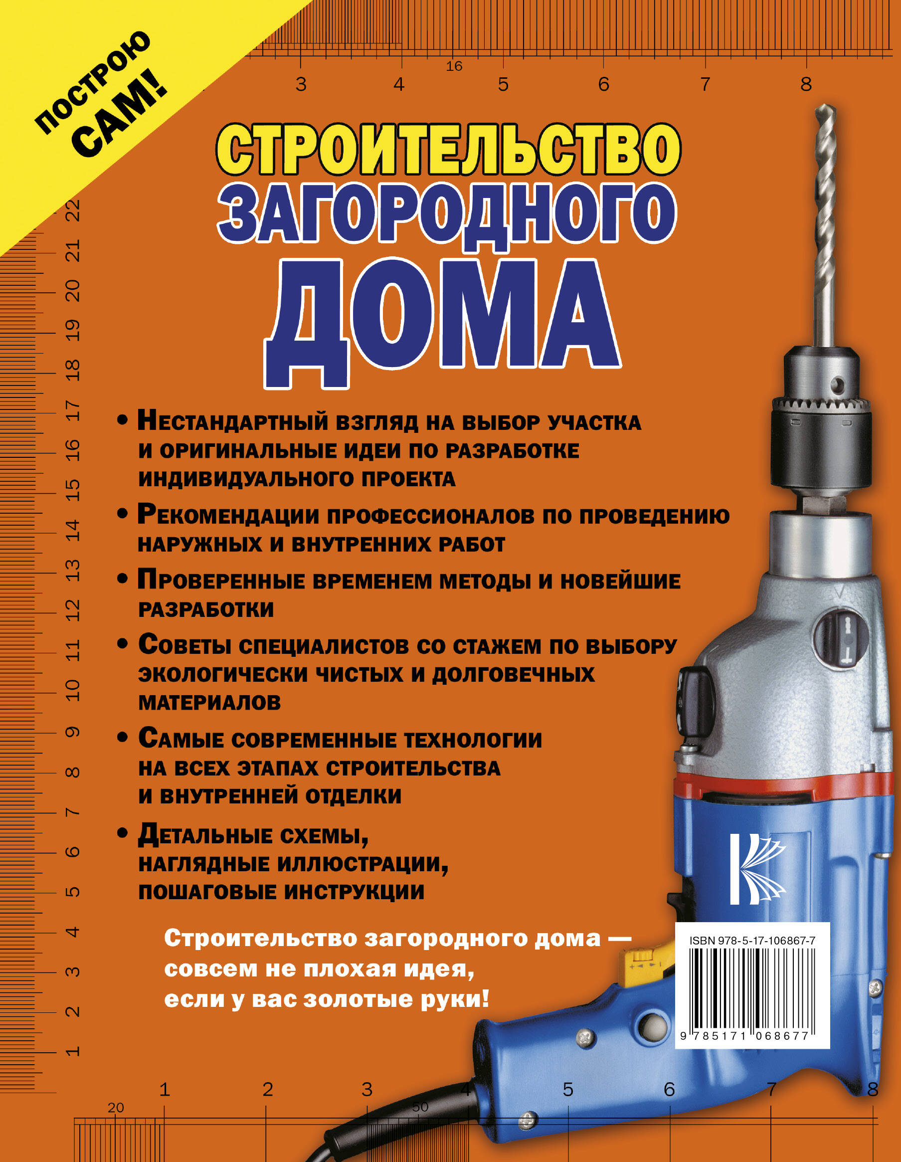С данной книгой строительство загородного дома станет для любого мужчины не только делом чести, но и несомненным удовольствием. Ведь в бесчисленных вопросах, возникающих во время этого ответственного процесса, вы сможете выступить настоящим экспертом. И это совсем не случайно, ведь каждый совет, изложенный на страницах этого издания, сопровождается не только пошаговыми пояснениями, но и схемами и иллюстрациями, которые помогают избежать ошибок и с легкостью принять обоснованное решение. Грамотно выбрать участок и привязать к нему разработанный проект, побеспокоиться о безупречной гидроизоляции фундамента и подобрать подходящие именно в вашем случае материалы для кровли и стен поможет информация, приведенная здесь. Уверены: ее будет более чем достаточно для решения не только этих, но и более сложных задач. А результату, включая внутреннюю отделку и стильный интерьер, позавидуют все ваши соседи и приятели. Смело следуйте нашим рекомендациям - и вы непременно станете мастером золотые руки.| Издательство | Издательство "АСТ" |