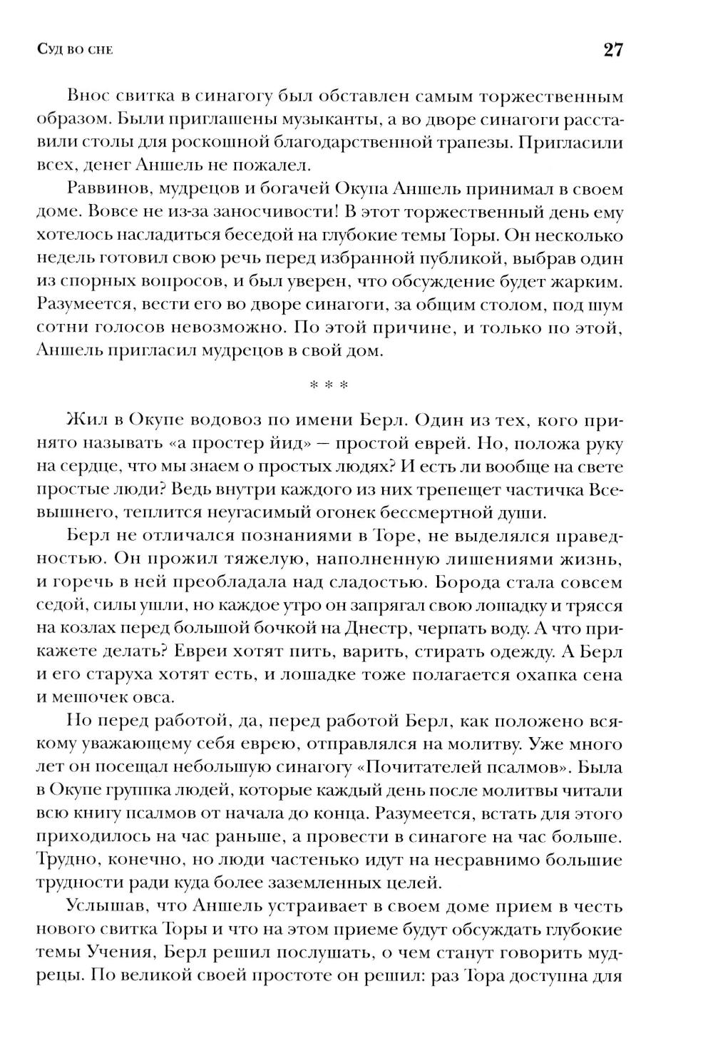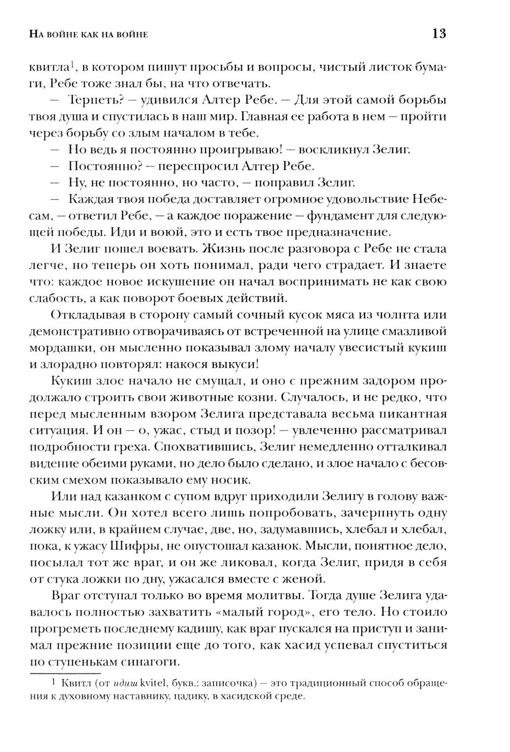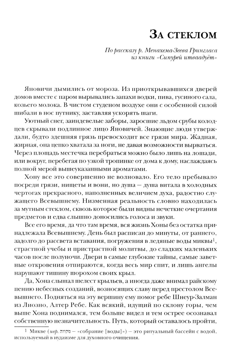 Хасидизм, зародившийся в первой половине XVIII века среди евреев Восточной Европы, стремился не столько к формальному соблюдению традиций, сколько к живому, эмоциональному участию в духовной жизни. Он пробуждал историческую память, передавая из поколения в поколение сюжеты многовековой истории народа, и вдохновлял - да и поныне вдохновляет - появление нового, самобытного фольклора, корнями уходящего в реальные события. Израильский писатель Яков Шехтер, пишущий на русском языке, уже много лет собирает и записывает услышанные им хасидские истории. Эти рассказы неспешны, как течение реки, но в какой-то момент сюжет вдруг взмывает вверх - развязка оказывается неожиданной, порой оглушительной, а мудрые изречения героев звучат как откровения. В этих историях переплетаются сказка и притча, моральное наставление и хроника. Все происходило в конкретных местах, в определенное время, и нередко сохранились имена и фамилии участников. И в таких повествованиях достоверность важнее художественного вымысла. Принято считать, что хасидские истории уцелели лишь в памяти немногих. «Это не совсем так, - говорит автор. - А точнее, совсем не так. Мир вокруг нас полон удивительных историй, невероятных событий, чудесных приключений. Чтобы их заметить, нужно всего лишь немного изменить угол зрения». Издание адресовано этнографам, литературоведам, религиоведам, историкам и круг заинтересованных читателей.| Издательство | Академический проект |