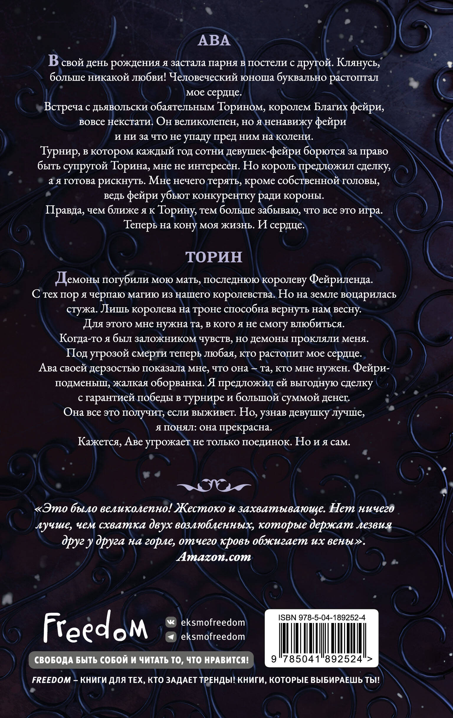 Страстное, пленяющее фэнтези о Короле Благих фейри и девушке, ставшей его музой, - новый цикл романов от К.Н. Кроуфорд! Для фанатов мрачных, жестоких и чарующих историй в духе Холли Блэк, Лекси Райан, Рейвен Кеннеди, и др.! Книга вошла в Топ-10 книг Амазон в жанрах «Фэнтези», «Истории о фейри»! Это вовсе не тот Фейриленд, который мы знали по наивным романтическим историям. Здесь балом правят власть, пороки, деньги и темная магия. Король Торин жаждет обрести свою Королеву Благих. Когда-то демоны прокляли его, и теперь он замораживает девушек одним лишь прикосновением. Но только тех, в которых влюбляется. Ава - удачный вариант, ведь она вовсе не героиня его сердца. Так он думает сначала. Но все меняется, когда Ава соглашается на сделку и приезжает к нему в замок… К. Н. Кроуфорд - это псевдоним двух писателей. Кристин из Лексингтона, штат Массачусетс, всю жизнь интересовалась фольклором Новой Англии, особенно историями о жутких старых кладбищах и жестоких казнях. Ник провел свое детство, зачитываясь фэнтези и научной фантастикой в периоды долгих зим в Вермонте, которые сделали его невосприимчивым к холоду. Мрачная, завораживающая эстетика теперь окутывает их строки, захватывая читателя в плен. Почему стоит читать? 1. Сильная, волевая Ава. 2. Холодный, но до мурашек обаятельный Торин. 3. Темная магия и коварство. 4. Нереальная химия, любовь и ненависть. 5. Герои, неидеальные и этим безумно прекрасные.| Издательство | ООО "Издательство "Эксмо" |
