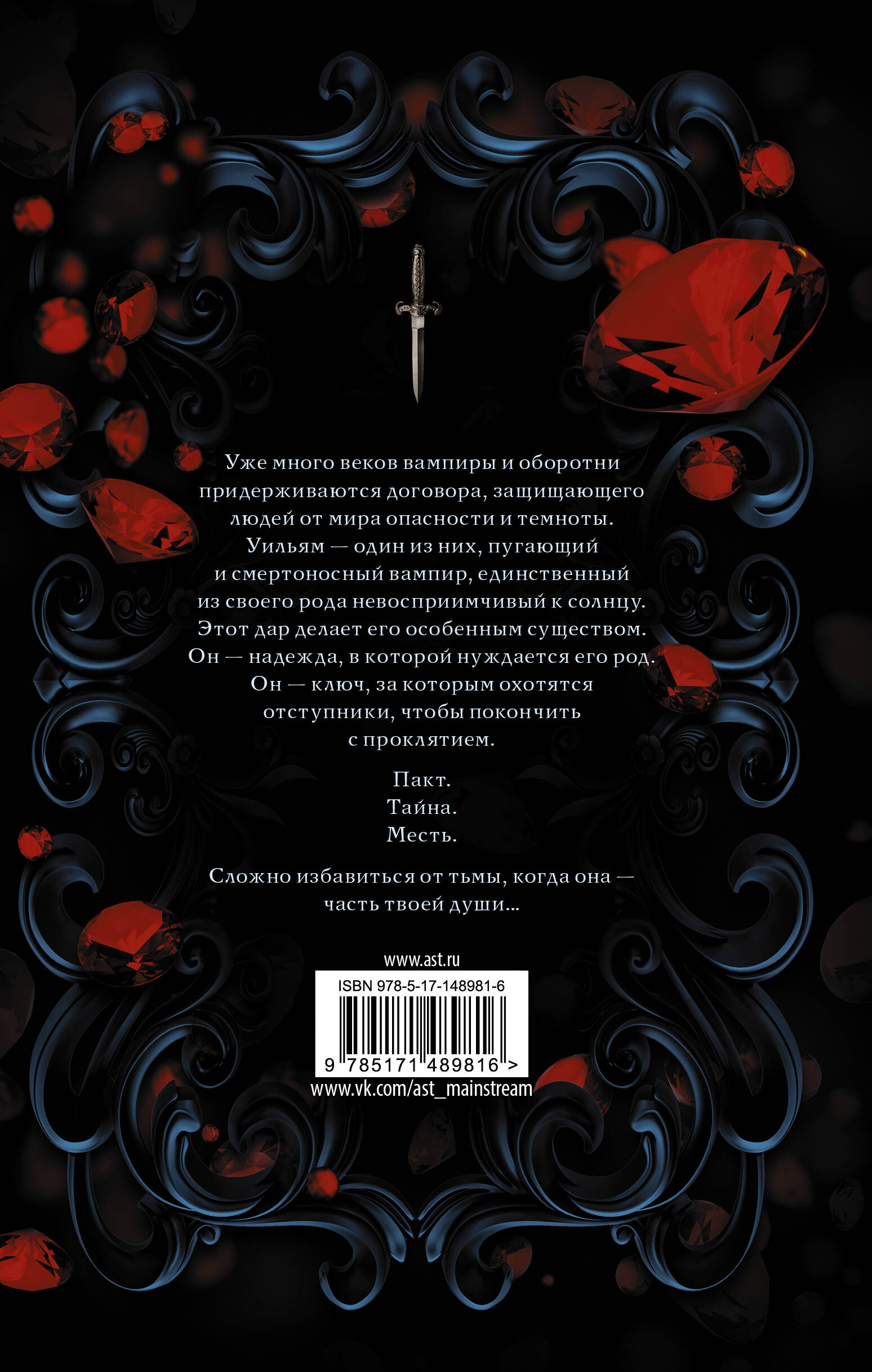 Уже много веков вампиры и оборотни придерживаются договора, защищающего людей от мира опасности и темноты. Уильям - один из них, пугающий и смертоносный вампир, единственный из своего рода невосприимчивый к солнцу. Этот дар делает его особенным существом. Он - надежда, в которой нуждается его род. Он - ключ, за которым охотятся отступники, чтобы покончить с проклятием. Пакт. Тайна. Месть. Сложно избавиться от тьмы, когда она - часть твоей души...| Издательство | ИЗДАТЕЛЬСТВО "АСТ" |