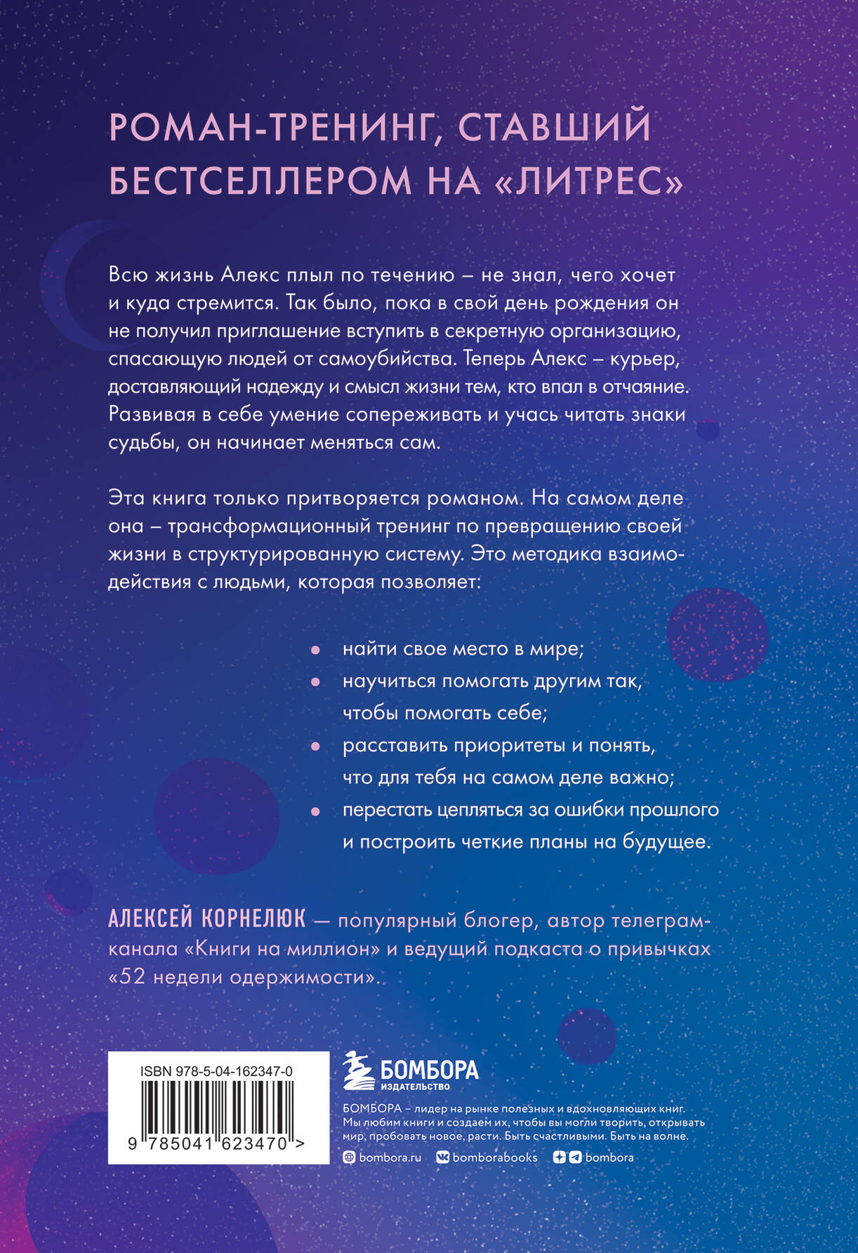 Всю жизнь Алекс плыл по течению - не знал, чего хочет и куда стремится. Так было, пока в свой день рождения он не получил приглашение вступить в секретную организацию, спасающую людей от самоубийств. Теперь Алекс - курьер, доставляющий надежду и смысл жизни тем, кто впал в отчаяние. Развивая в себе умение сопереживать и учась читать знаки судьбы, он начинает меняться сам.