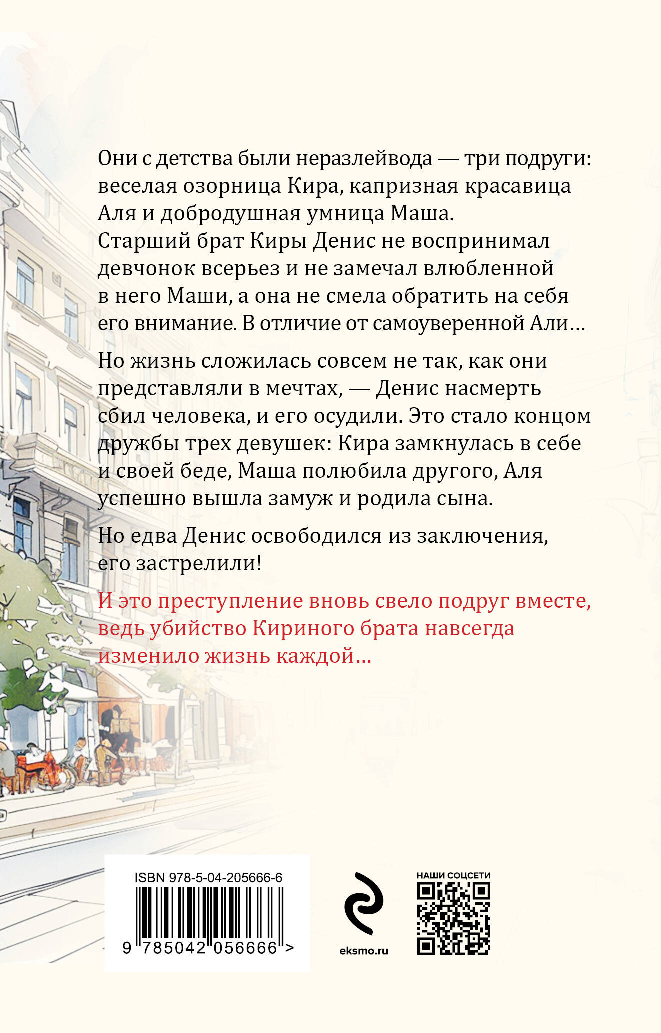 Они с детства были не разлей вода - три подруги: веселая озорница Кира, капризная красавица Аля и добродушная умница Маша. Старший брат Киры Денис не воспринимал девчонок всерьез и не замечал влюбленной в него Маши, а она не смела обратить на себя его внимание. В отличие от самоуверенной Али… Но жизнь сложилась совсем не так, как они представляли в мечтах - Денис насмерть сбил человека, и его осудили. Это стало концом дружбы трех девушек: Кира замкнулась в себе и своей беде, Маша полюбила другого, Аля успешно вышла замуж и родила сына. Но едва Денис освободился из заключения, его застрелили! И это преступление вновь свело подруг вместе, ведь убийство Кириного брата навсегда изменило жизнь каждой… Татьяна Устинова рекомендует: «Удивительно, но в книгах Евгении Горской угадывается настроение больших русских романов. Она умещает в детектив современную энциклопедию разнообразнейших губительных страстей, созидательных любовей и ярких, живых, разноголосых героев. Получается не только интересно и зажигательно, но еще и очень по-настоящему - ровно настолько, чтобы захотелось поверить в эту историю. Горская ловко и умеючи держит читателя в напряжении: тебе иногда страшно, иногда смешно, иногда будто бы совсем безнадежно, но в конечном итоге понимаешь: все будет хорошо!»| Издательство | ООО "Издательство "Эксмо" |