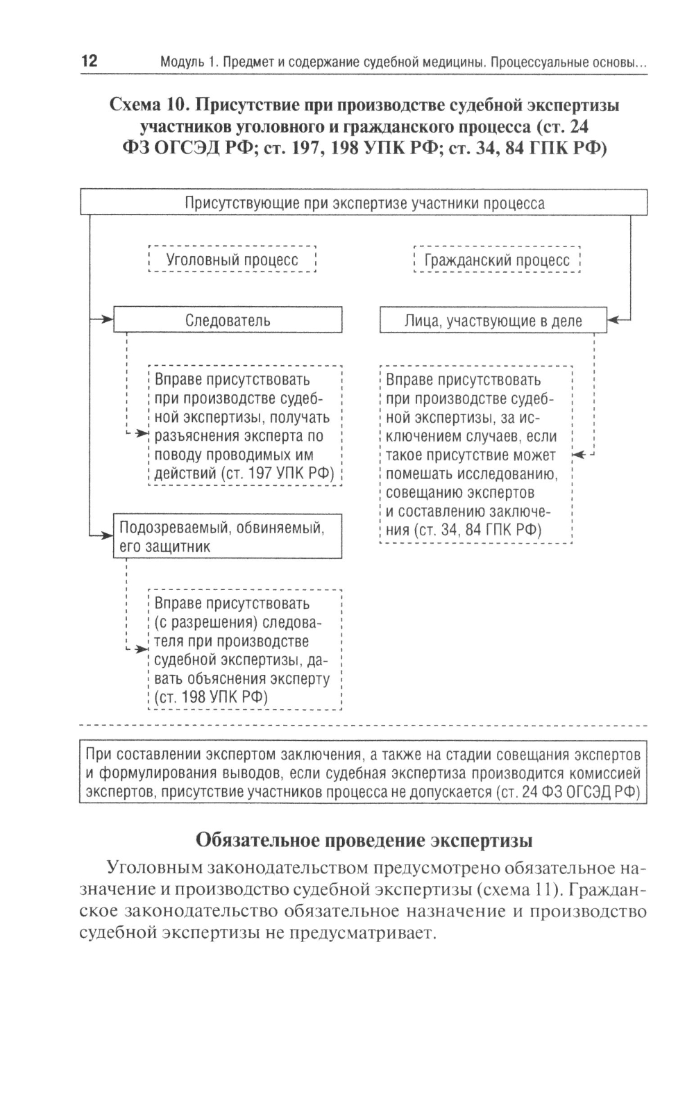 В настоящем издании учебного пособия (первое вышло в 2004 г.) на основе современных научных данных с учетом новых действующих законодательных норм (по состоянию на январь 2017 г.) в виде схем и рисунков освещаются наиболее важные вопросы судебно-медицинской науки и практики - порядок и процессуальные основы назначения и производства судебно-медицинской экспертизы; экспертные возможности при исследовании объектов судебно-медицинской экспертизы - трупов, живых лиц, вещественных доказательств биологического происхождения, материалов уголовных и гражданских дел. Подготовлено в соответствии с примерной программой по судебной медицине для студентов, обучающихся по специальности «Лечебное дело». Данное издание может быть полезным клиническим ординаторам, аспирантам, преподавателям и врачам - судебно-медицинским экспертам.| Издательство | Проспект |