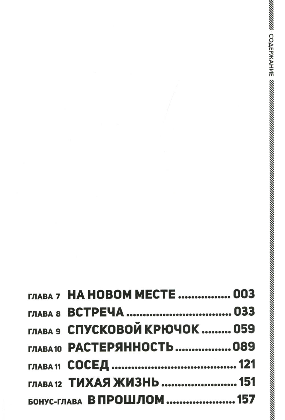 Отношения между Судзуки и Дзинске, которые по-прежнему продолжают скрываться, претерпевают изменения... Судзуки, желающая тихой и спокойной жизни, уже начинает привыкать быть постоянно в бегах. А Дзинске наконец-то рассказывает о ситуации, которая случилась у его семьи с полицией. Шестеренки семейной игры начинают выходить из строя.| Издательство | Фабрика комиксов |