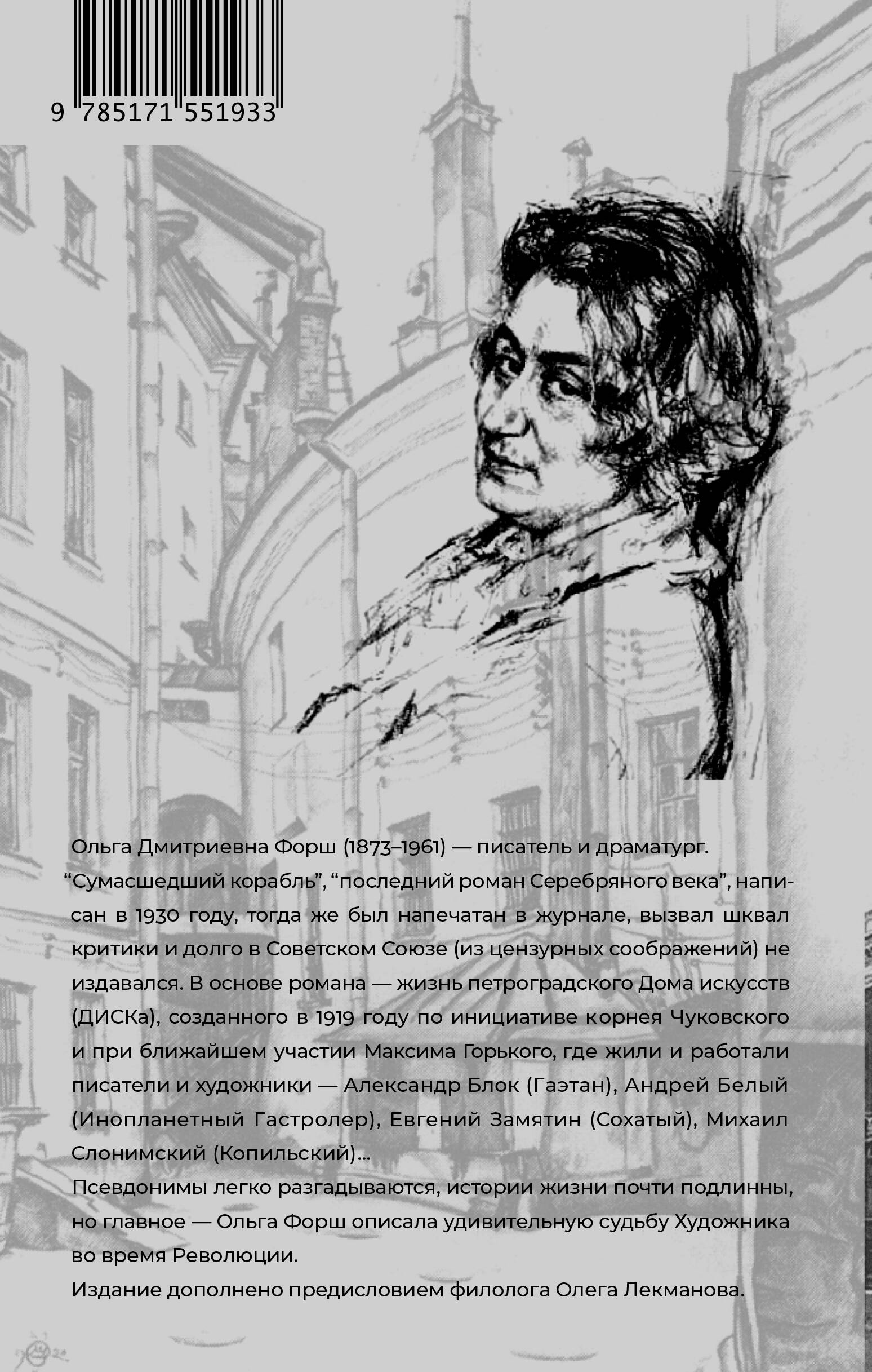 1. Переиздание культового романа. Знаменитая книга, запечатлевшая конец Серебряного века и бурную эпоху русской культуры, 1920-е. После первой публикации надолго был запрещен к изданию в СССР. 2. «Роман с ключом». В книге воссоздан артистический быт Петрограда начала ХХ века и знаменитого «Дома искусств» на углу Невского и Мойки. Герои имеют прототипов, а события происходили в реальности. 3. Расшифровка псевдонимов. После выхода романа в 1930 году многие узнали себя в героях Форш. Читателю помогут разобраться в реалиях и героях построчные примечания и предисловие филолога Олега Лекманова. 4. Книга итогов. Роман описывает закат Серебряного века - времени великих произведений, знаменитых романов и невероятных героев. Писательница размышляет о смене культурных эпох в новой стране. 5. Книга о последней свободной эпохе русской культуры, за которой последовали годы идеологического диктата.| Издательство | ИЗДАТЕЛЬСТВО "АСТ" |