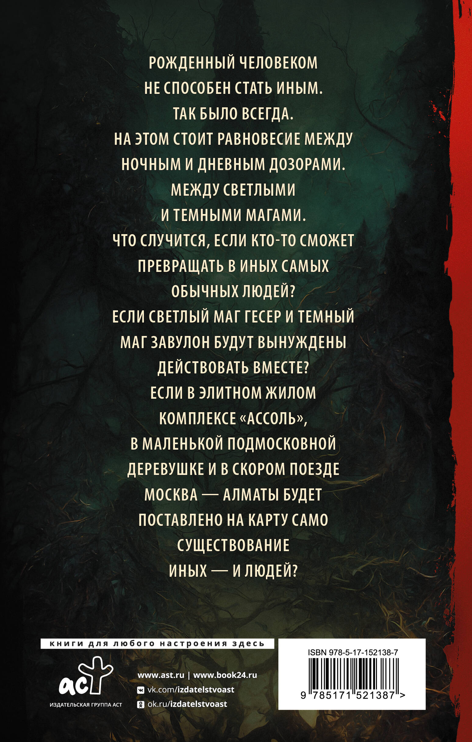 Рожденный человеком не способен стать Иным. Так было всегда. На этом стоит равновесие между Ночным и Дневным Дозорами. Между Светлыми и Темными магами. Что случится, если кто-то сможет превращать в Иных самых обычных людей? Если Светлый маг Гесер и Темный маг Завулон будут вынуждены действовать вместе? Если в элитном жилом комплексе "Ассоль", в маленькой подмосковной деревушке и в скором поезде Москва - Алматы будет поставлено на карту само существование Иных - и людей?