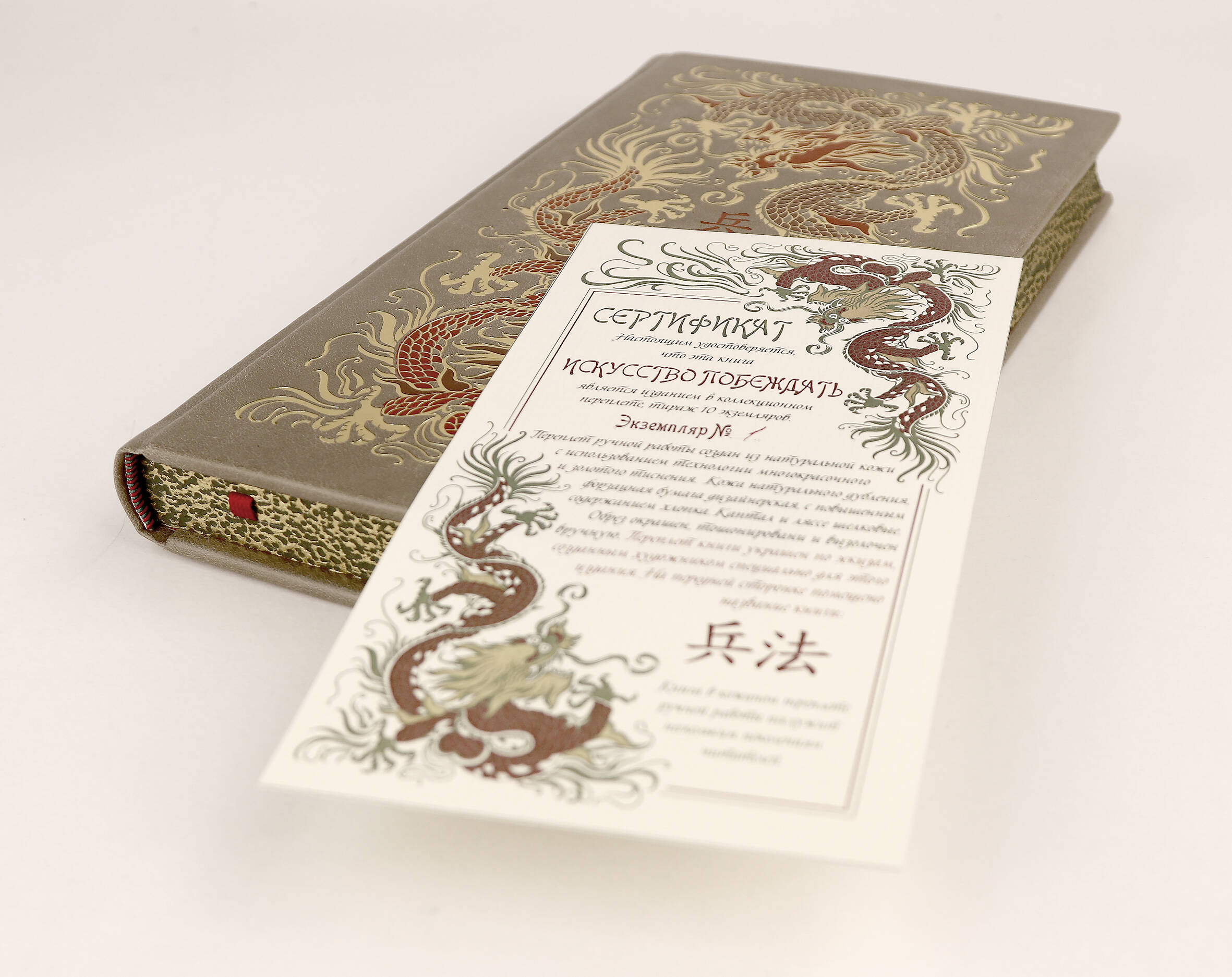 Аннотация: Сунь-Цзы. Искусство побеждать. В переводе и с комментариями Б. Виногродского. Книга в коллекционном кожаном переплете ручной работы красочным тиснением и торшонированными обрезами.