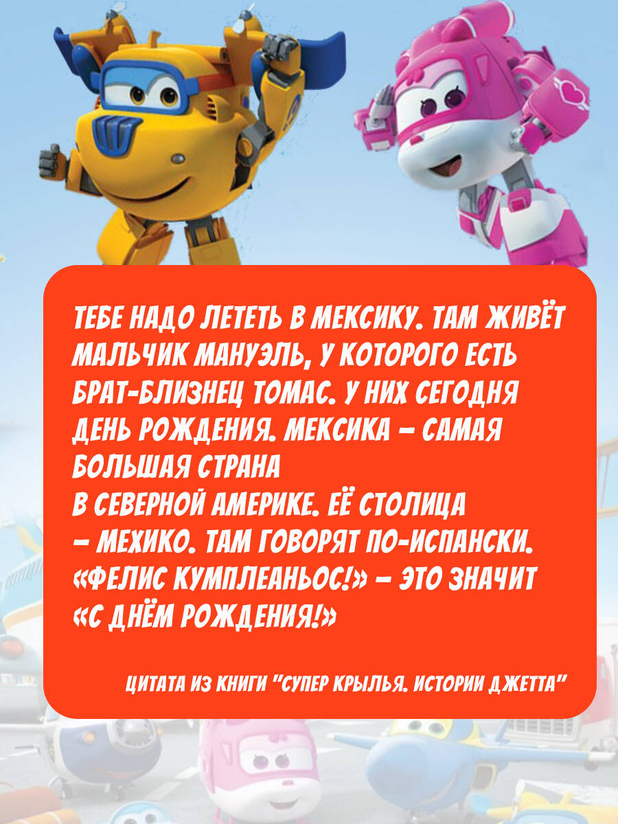 Отправляйтесь в невероятное путешествие вместе с командой любимых героев - "Супер Крыльями". Вас ждут увлекательные приключения, захватывающие задания и множество интересных персонажей. Наши герои готовы всегда прийти на помощь, и не только вовремя доставить посылки, но и помочь друзьям! Присоединяйтесь к Джетту и его друзьям в новом приключении и узнавайте новое о нашей планете!| Издательство | Издательство "АСТ" |