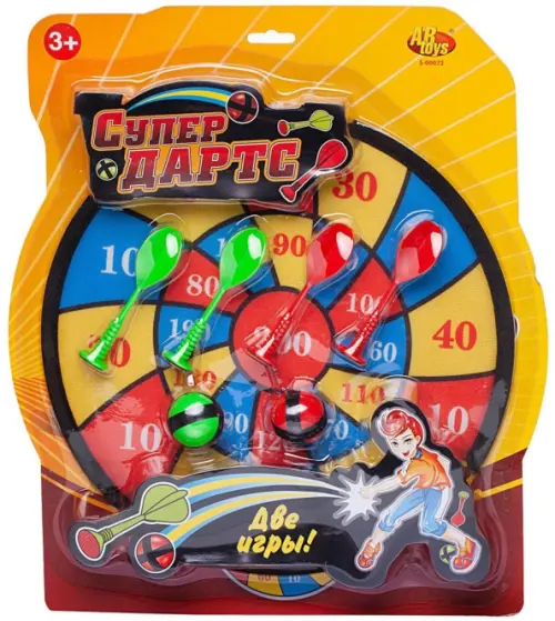 Комплектность набора: доска, дротики 4шт., шарики 2 шт.