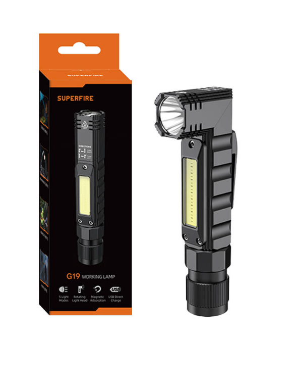 Функциональный фонарик Superfire G19 отличается высокой яркостью благодаря 200 люменам, дальности освещения 200 метров и аккумулятору емкостью 800 мач. Благодаря 5 режимам освещения и возможности использовать его по-разному, вы можете легко настроить его в соответствии со своими потребностями. Его небольшой вес (104 г) и компактные размеры делают использование его функциональности легким и приятным. Дополнительная лампа COB, расположенная сбоку, открывает еще больше возможностей.