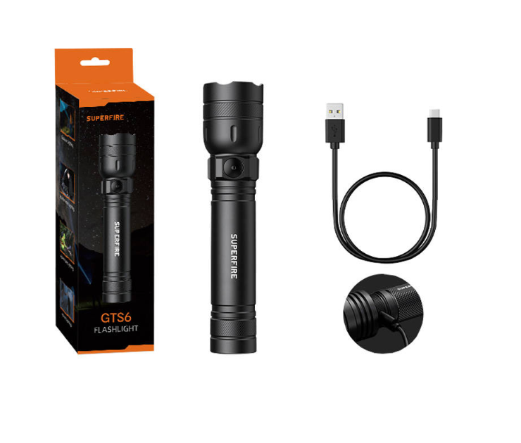 Удобный фонарик Super fire GTS6 отличается компактным и легким дизайном, поэтому вы всегда можете иметь его под рукой. Встроенная аккумуляторная батарея обеспечивает до 2 часов работы, и она водонепроницаема (IP44). Он выделяется выходной мощностью в 7 Вт, а его уровень яркости составляет 360 лм. Он также предлагает 5 режимов освещения.Будьте в безопасности после наступления темноты. Фонарик обеспечивает стабильное и мощное освещение с яркостью 360 лм. Его максимальное расстояние освещения составляет 150 м, поэтому он легко осветит вам путь в темноте. Модель GTS6 отлично подойдет для самых разных ситуаций, таких как пешие прогулки, кемпинг или неожиданное отключение электроэнергии.Настройте работу фонарика Superfire GTS6 в соответствии с вашими потребностями. Вы можете свободно выбирать из 5 доступных режимов освещения. В вашем распоряжении режимы "Сильный", "средний", "низкий", а также стробоскоп и SOS.Практичный фонарик GTS6 может сопровождать вас практически в любом месте. Он чрезвычайно легкий и компактный, поэтому вы легко поместите его в рюкзак или сумку. Он также обладает водонепроницаемостью на уровне IP44 - ему не страшны меняющиеся погодные условия, а также падения с высоты до 1 метра. Многоуровневая защита обеспечивает безопасность использования. Помимо прочего, он защищает от перезаряда, чрезмерного разряда или низкого напряжения.