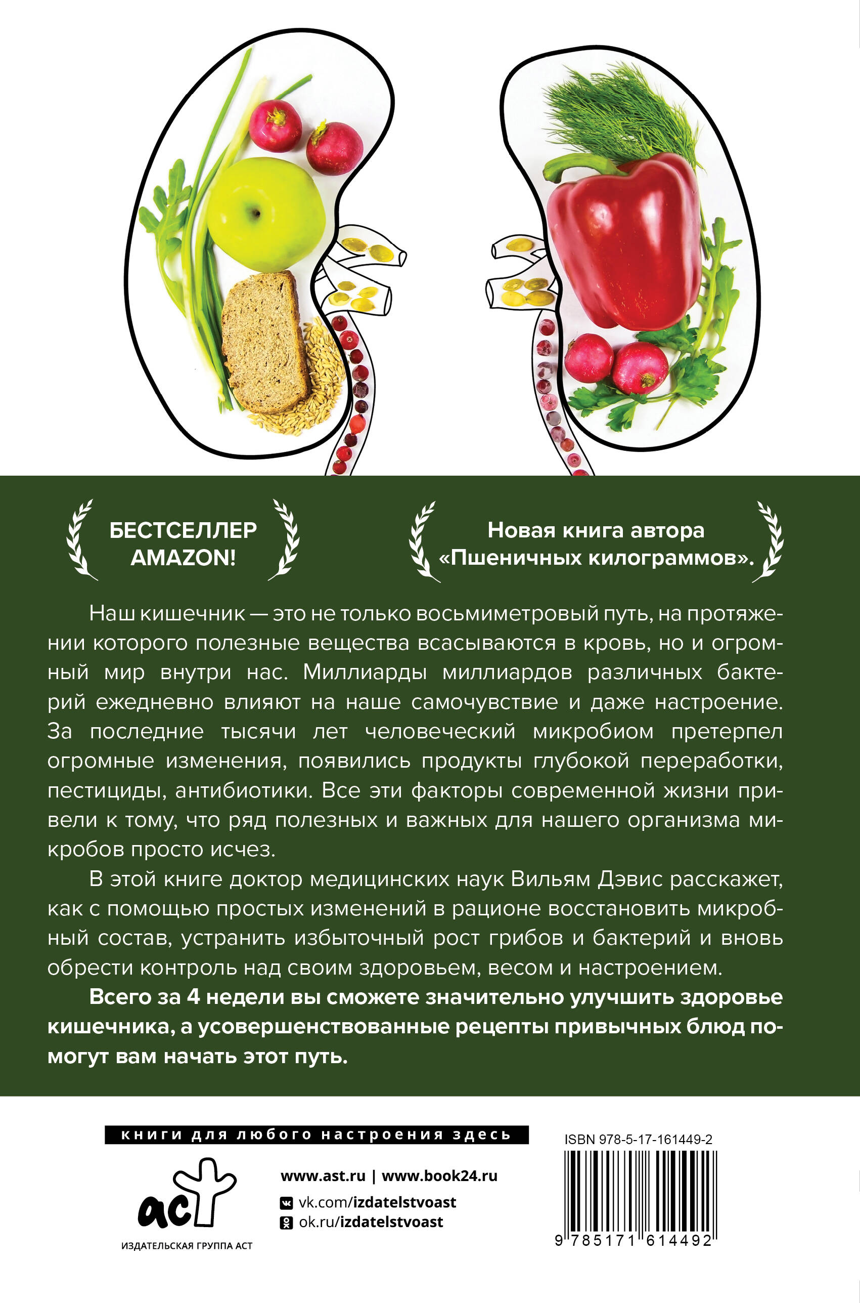 Бестселлер Amazon! Новая книга автора "Пшеничных килограммов". Наш кишечник - это не только восьмиметровый путь, на протяжении которого полезные вещества всасываются в кровь, но и огромный мир внутри нас. Миллиарды миллиардов различных бактерий ежедневно влияют на наше самочувствие и даже настроение. За последние тысячи лет человеческий микробиом претерпел огромные изменения, появились продукты глубокой переработки, пестициды, антибиотики. Все эти факторы современной жизни привели к тому, что ряд полезных и важных для нашего организма микробов просто исчез. В этой книге доктор медицинских наук Вильям Дэвис расскажет, как с помощью простых изменений в рационе восстановить микробный состав, устранить избыточный рост грибов и бактерий и вновь обрести контроль над своим здоровьем, весом и настроением. Всего за 4 недели вы сможете значительно улучшить здоровье кишечника, а усовершенствованные рецепты привычных блюд помогут вам начать этот путь.| Издательство | Издательство "АСТ" |