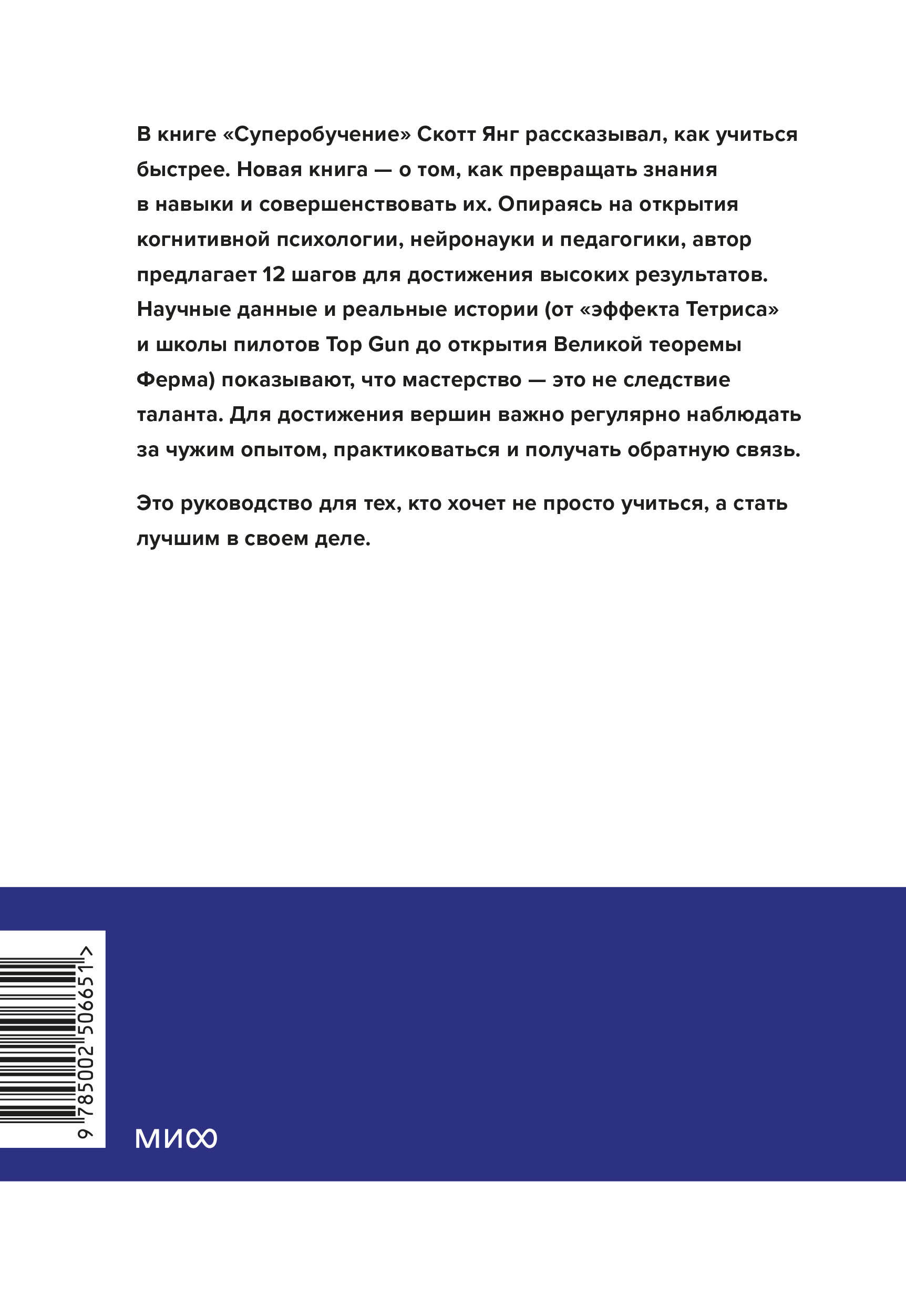 Новинка от автора бестселлера «Суперобучение» 12 шагов к эффективному развитию любого навыка Поможет превратить знания в достижения| Издательство | МИФ ООО |
