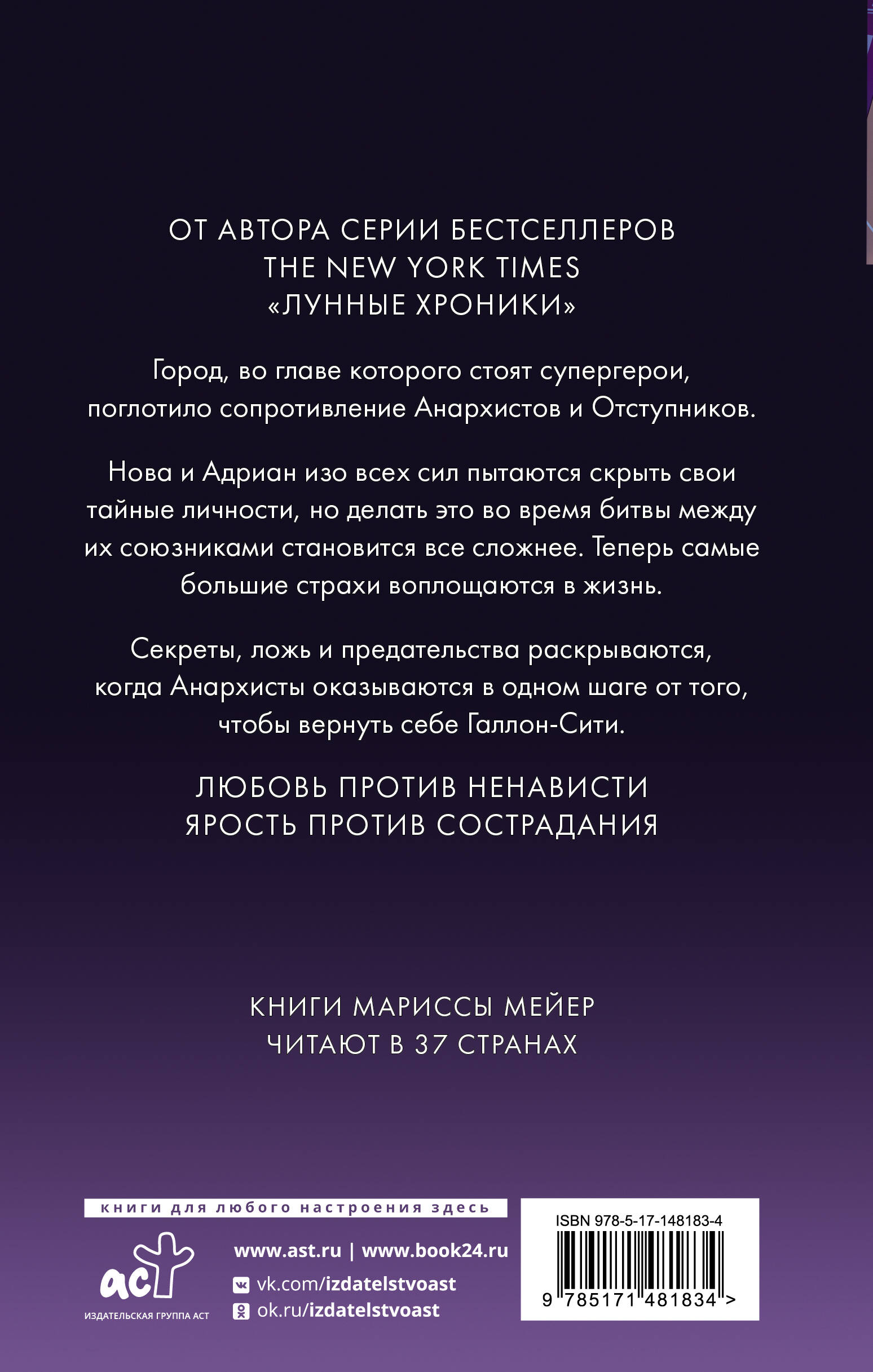 Город, во главе которого стоят супергерои, поглотило сопротивление Анархистов и Отступников. Нова и Адриан изо всех сил пытаются скрыть свои тайные личности, но делать это во время битвы между их союзниками становится все сложнее. Теперь самые большие страхи воплощаются в жизнь. Секреты, ложь и предательства раскрываются, когда Анархисты оказываются в одном шаге от того, чтобы вернуть себе Галлон-Сити.| Издательство | ИЗДАТЕЛЬСТВО "АСТ" |
