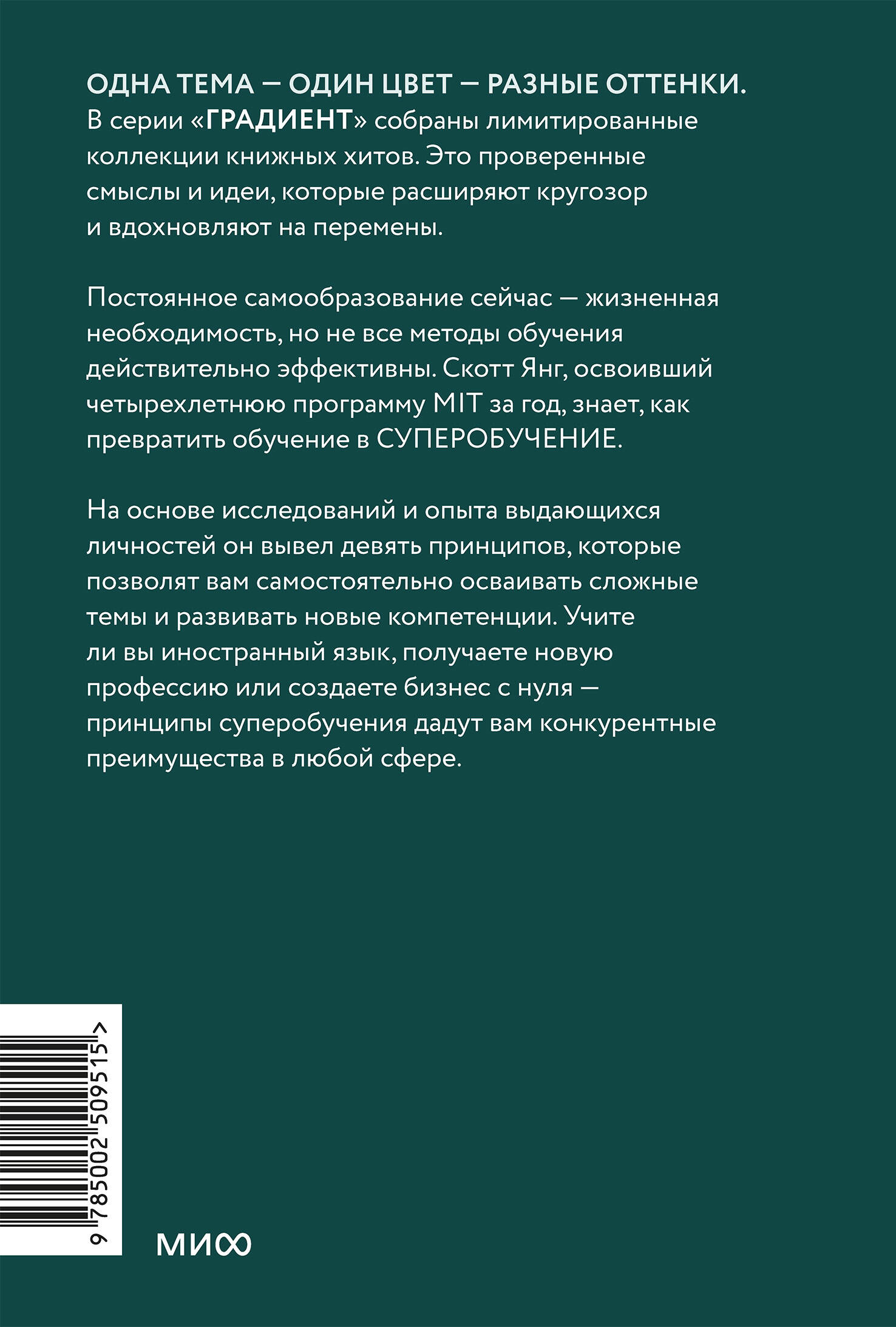 9 принципов самообразования в формате покетбука Ускорит процесс познания: от изучения языков до построения карьеры От автора, который за год овладел 4 языками| Издательство | МИФ ООО |
