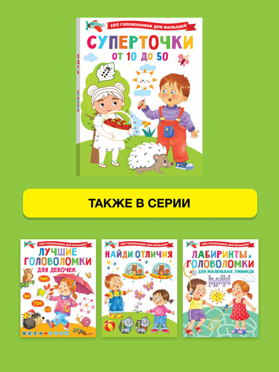 «Суперточки. От 10 до 50» - это сборник рисунков по точкам для малышей. Занимаясь по книге, ребята закрепят навык порядкового счёта, потренируют мелкую моторику, смогут развить графические навыки.| Издательство | АСТ |