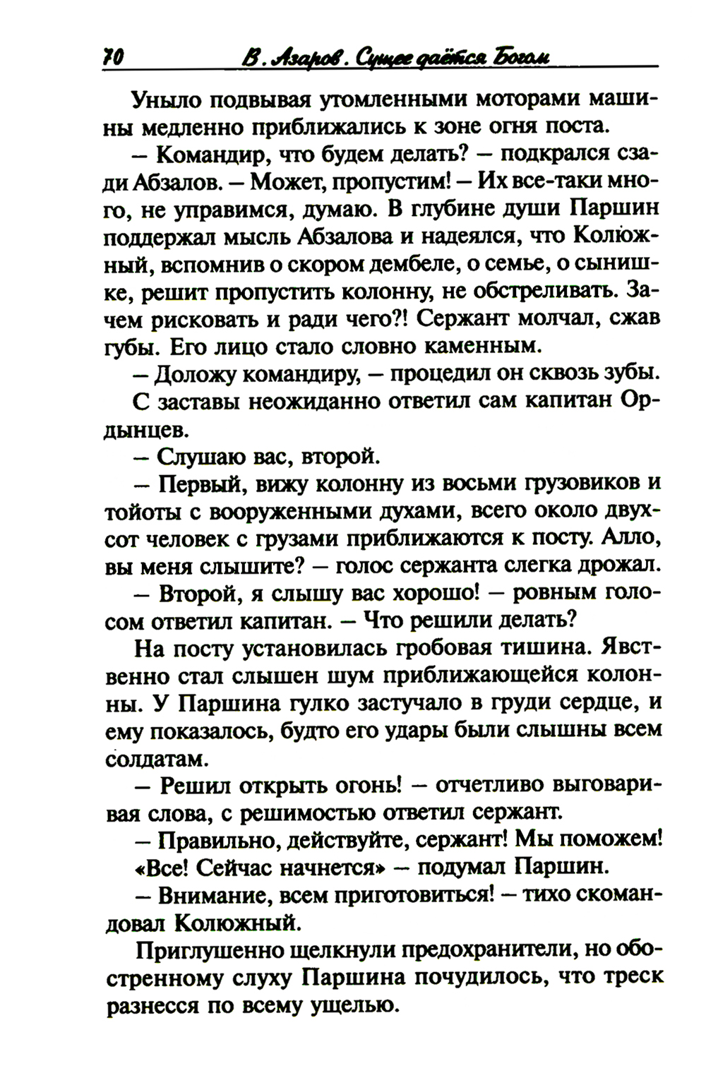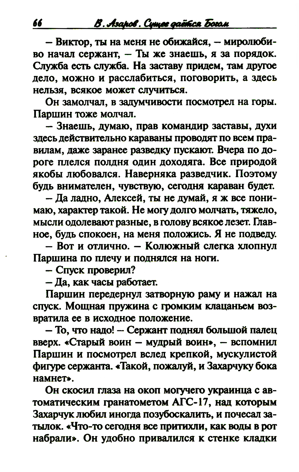 Предлагаемая читателю книга - сборник рассказов кандидата политических наук, заслуженного боевого офицера, прошедшего горнило нескольких современных войн. Рассказы основаны на реальных событиях из фронтовой жизни автора, который с глубокой психологической точностью сумел создать в них собирательный образ защитника Отечества наших дней, осознающего себя наследником лучших традиций Русской Армии. Последний рассказ посвящен носителям этих традиций -дань памяти русскому воинству прежних лет - и написан автором после посещения кладбища Сент-Женевьев-де-Буа во Франции, где похоронена элита дореволюционной русской эмиграции. «Неверующих на войне не бывает» - вот лейтмотив, проходящий через все рассказы В.А. Азарова.| Издательство | Смирение |