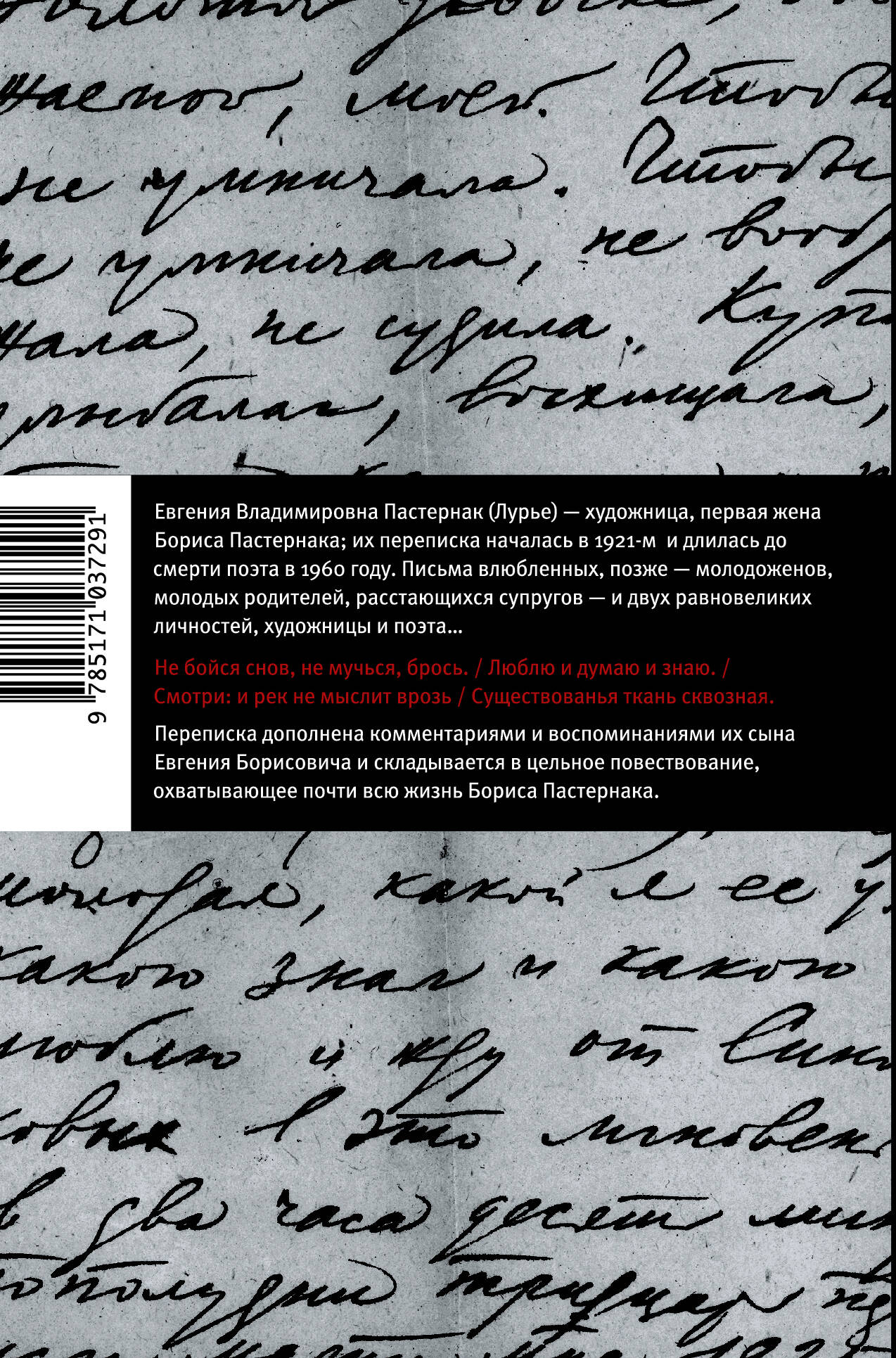 Евгения Владимировна Пастернак (Лурье) - художница, первая жена Бориса Пастернака; их переписка началась в 1921-м и длилась до смерти поэта в 1960 году. Письма влюбленных, позже - молодоженов, молодых родителей, расстающихся супругов - и двух равновеликих личностей, художницы и поэта… Не бойся снов, не мучься, брось. Люблю и думаю и знаю. Смотри: и рек не мыслит врозь Существованья ткань сквозная. Переписка дополнена комментариями и воспоминаниями их сына Евгения Борисовича и складывается в цельное повествование, охватывающее почти всю жизнь Бориса Пастернака.
