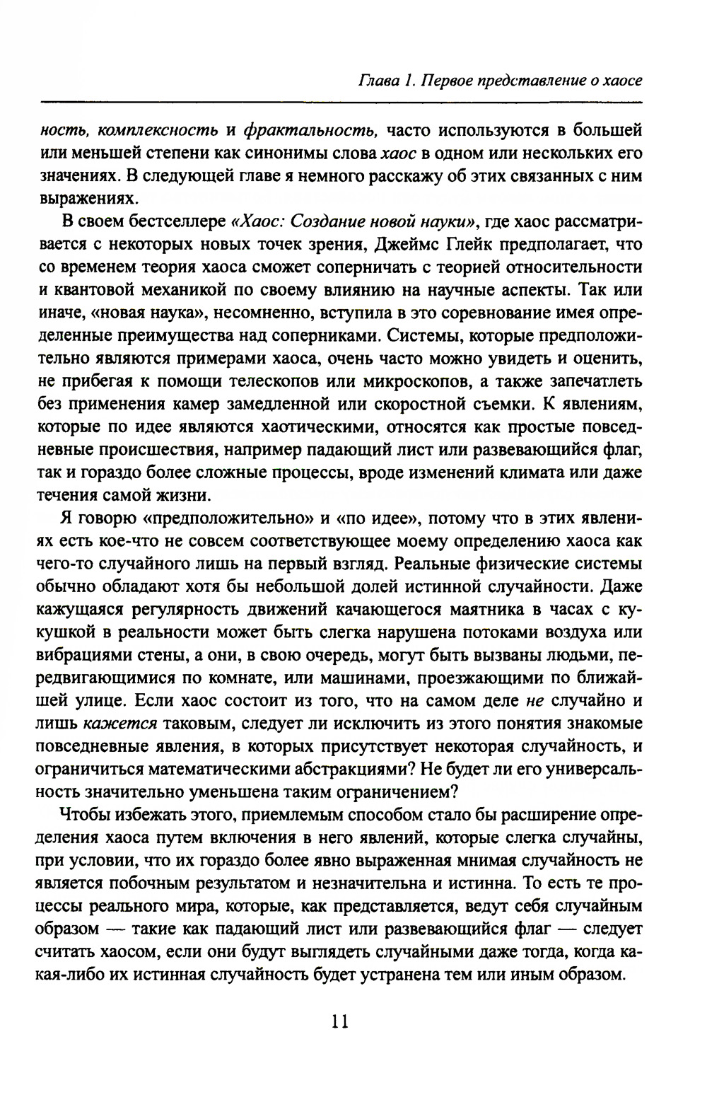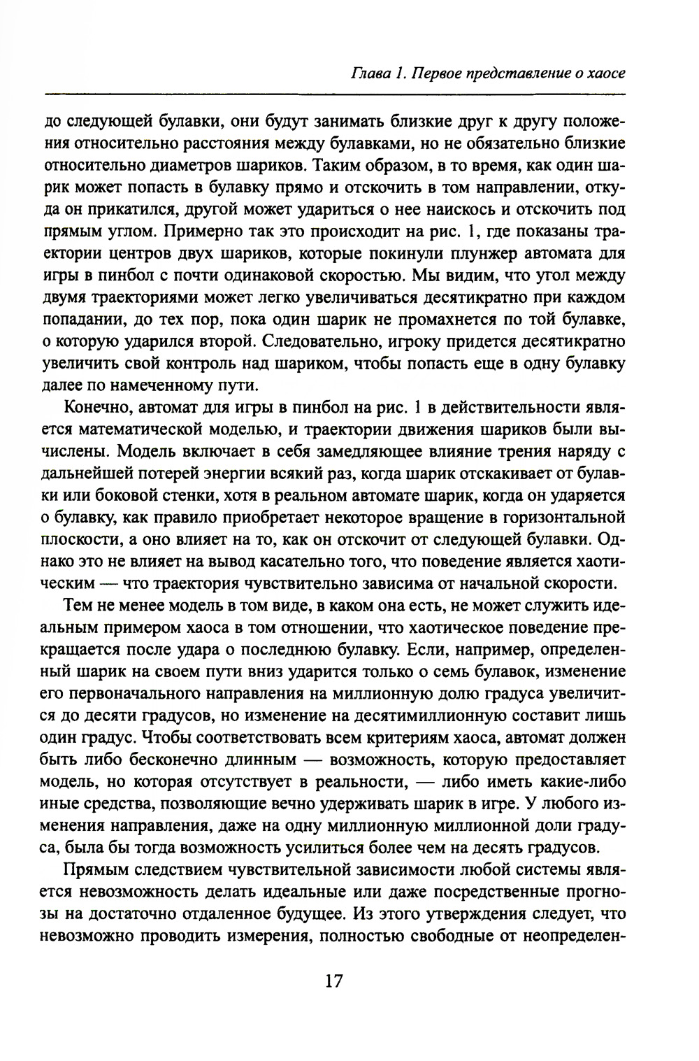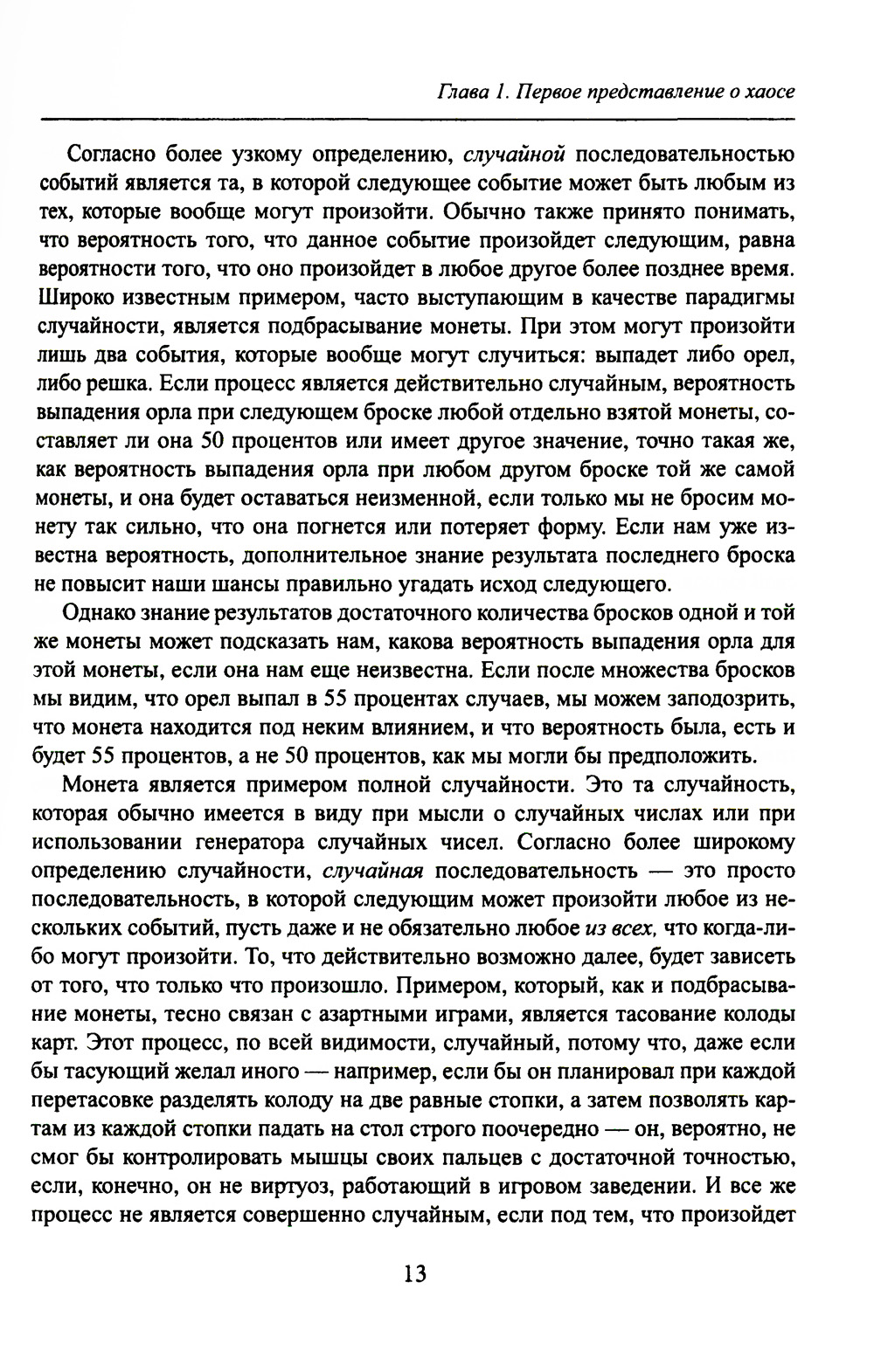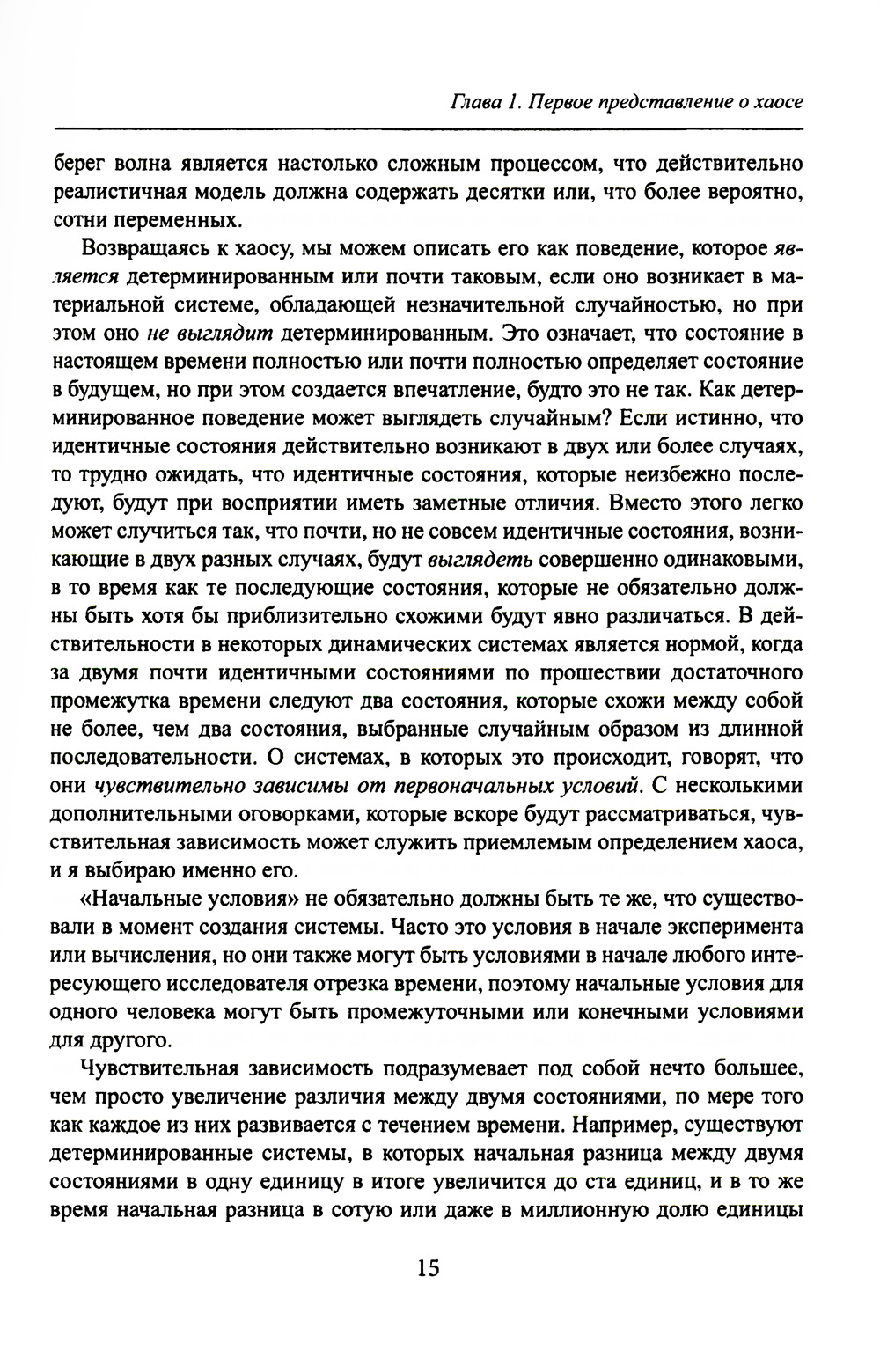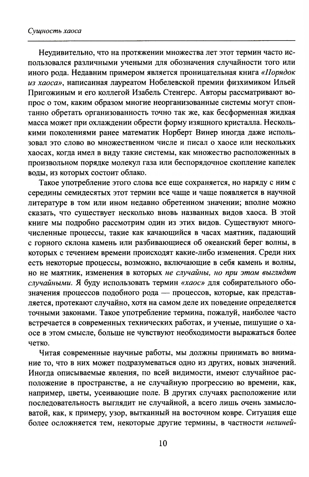 В отличие от явлений, рассматриваемых в теории относительности и квантовой механике, системы, которые сейчас описываются как «хаотические», можно наблюдать без телескопов или микроскопов. Они варьируются от простейших событий до самых сложных процессов: от падения листа до колебаний климата. Однако любой подобный процесс имеет определенные количественные характеристики. То, как он разворачивается, чувствительно зависит от его текущего состояния, поэтому он и кажется случайным, хотя таковым не является. Лоренц использует примеры из повседневной жизни и простые вычисления, чтобы показать сущность хаотических систем. В качестве основного иллюстративного примера он построил математическую модель доски, скользящей по горнолыжному склону. С помощью этой модели он объясняет различные хаотические явления, в том числе некоторые связанные с ними концепции, такие как странные аттракторы и бифуркации. В «Сущности хаоса» Лоренц представляет широкому читателю особенности «новой науки» и ее влияние на современную жизнь - от предсказания погоды до философии.