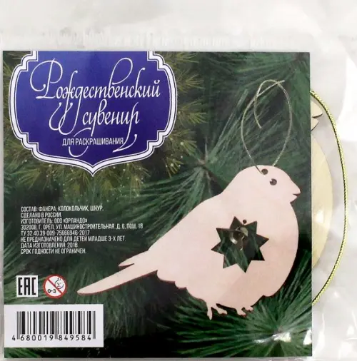 Рождественский сувенир-подвеска для раскрашивания.