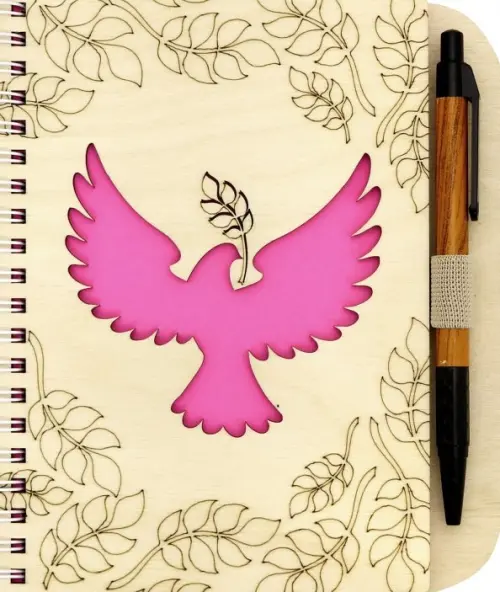 Блокнот деревянный с ручкой. Голубь