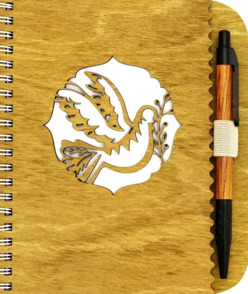 Блокнот выполнен из высококачественной фанеры. Размер блокнота 15х17см, размер обложки 12,5х17 см. Блокнот содержит блок для записей объемом 40 листов без разлиновки. В комплект входит шариковая ручка.
