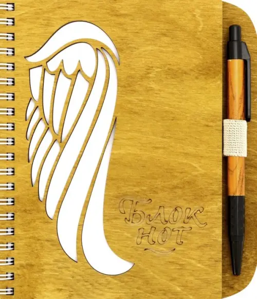 Блокнот деревянный с ручкой. Крыло