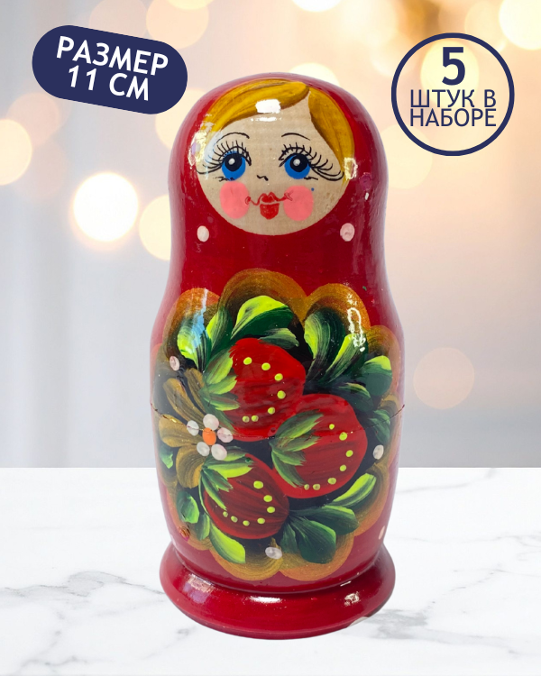 Аннотация: Матрешка Ирина красная 5 в 1, 11 см - K44